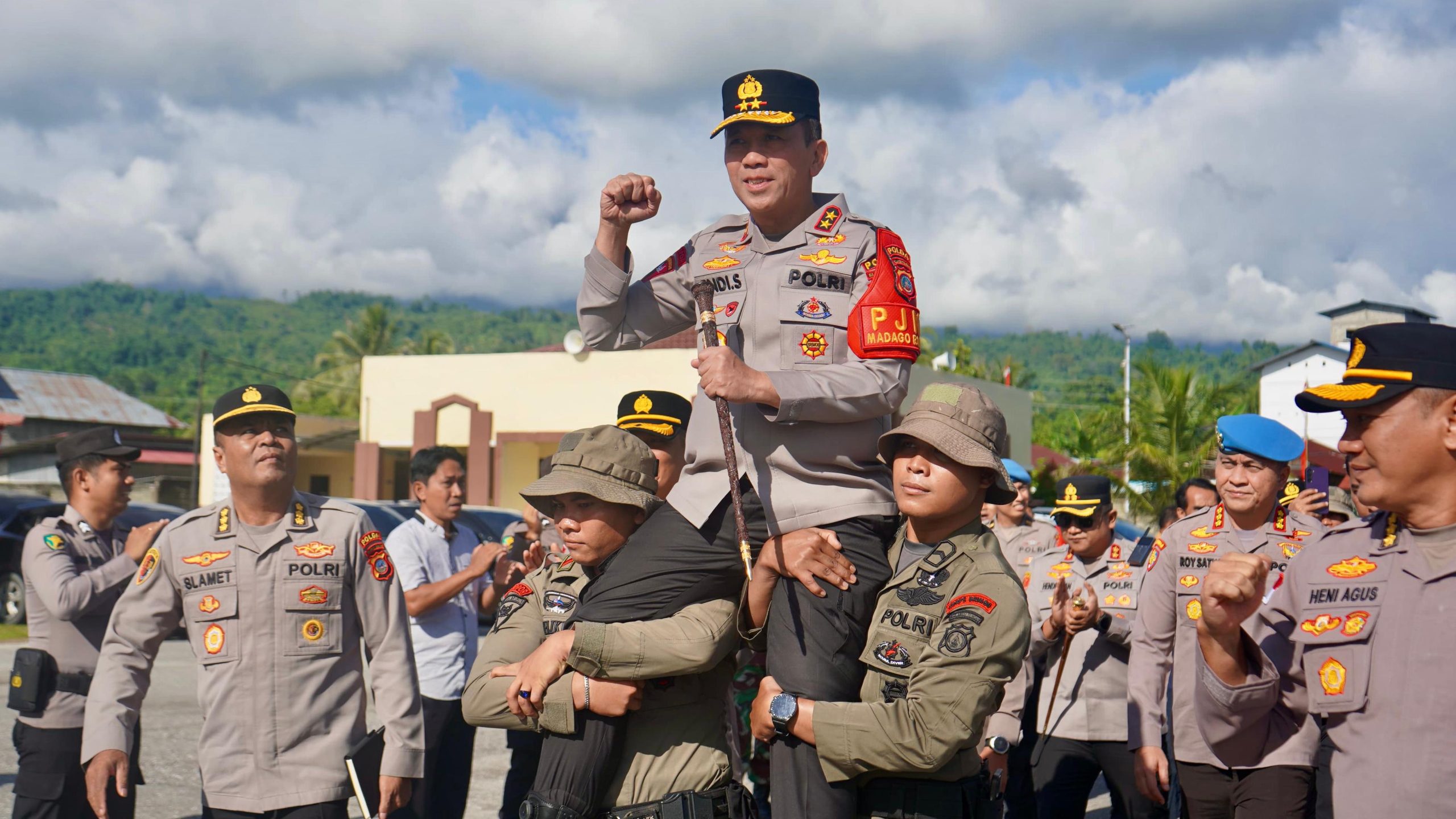 Poso – Kapolda Sulawesi Tengah Irjen Pol Dr Endi Sutendi meninjau Pos Komando Taktis (Poskotis) Tokorondo di Kabupaten Poso, Kamis (11/12/2025). Kedatangannya sebagai Penanggung Jawab Kebijakan Operasi (PJKO) Ops Madago Raya disambut jajar hormat personel yang berdiri rapi di halaman pos. Suasana penyambutan makin hidup dengan lantunan yel-yel semangat dari seluruh personel.