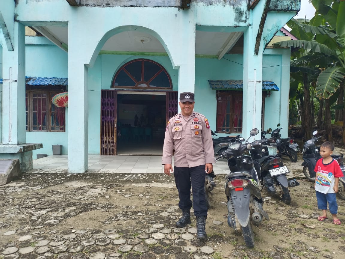 Kegiatan pengaman tersebut yang dilakukan oleh Aipda Mulyoto dan Brigadir Herry Setyawan untuk memastikan pelaksanaan ibadah di Gereja Kristen Efata Darit berjalan dengan aman tertib dan lancar.
