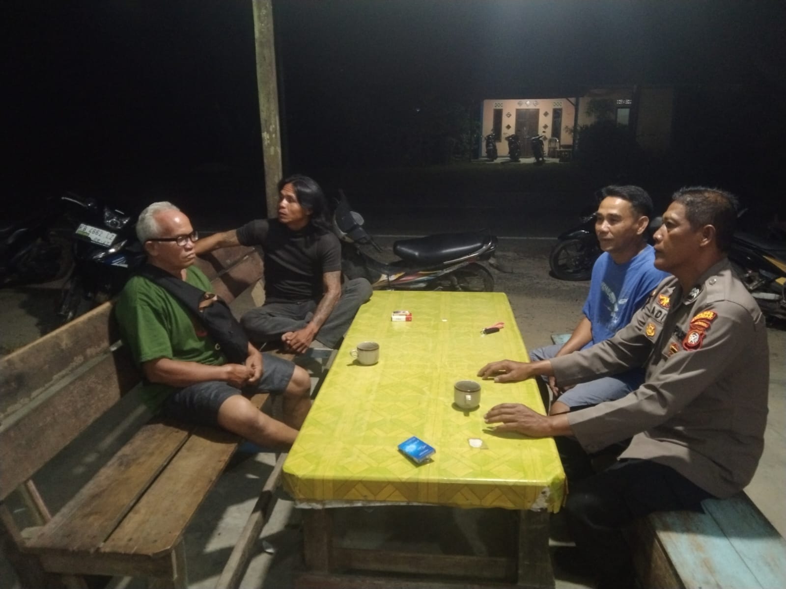 Kegiatan patroli tersebut dilakukan secara humanis, di mana personel Polsek Mandor berdialog langsung dengan warga di pos ronda dan warung kopi. Sambil menikmati suasana malam yang tenang, petugas mengajak masyarakat berdiskusi ringan mengenai situasi lingkungan serta pentingnya menjaga keamanan bersama.