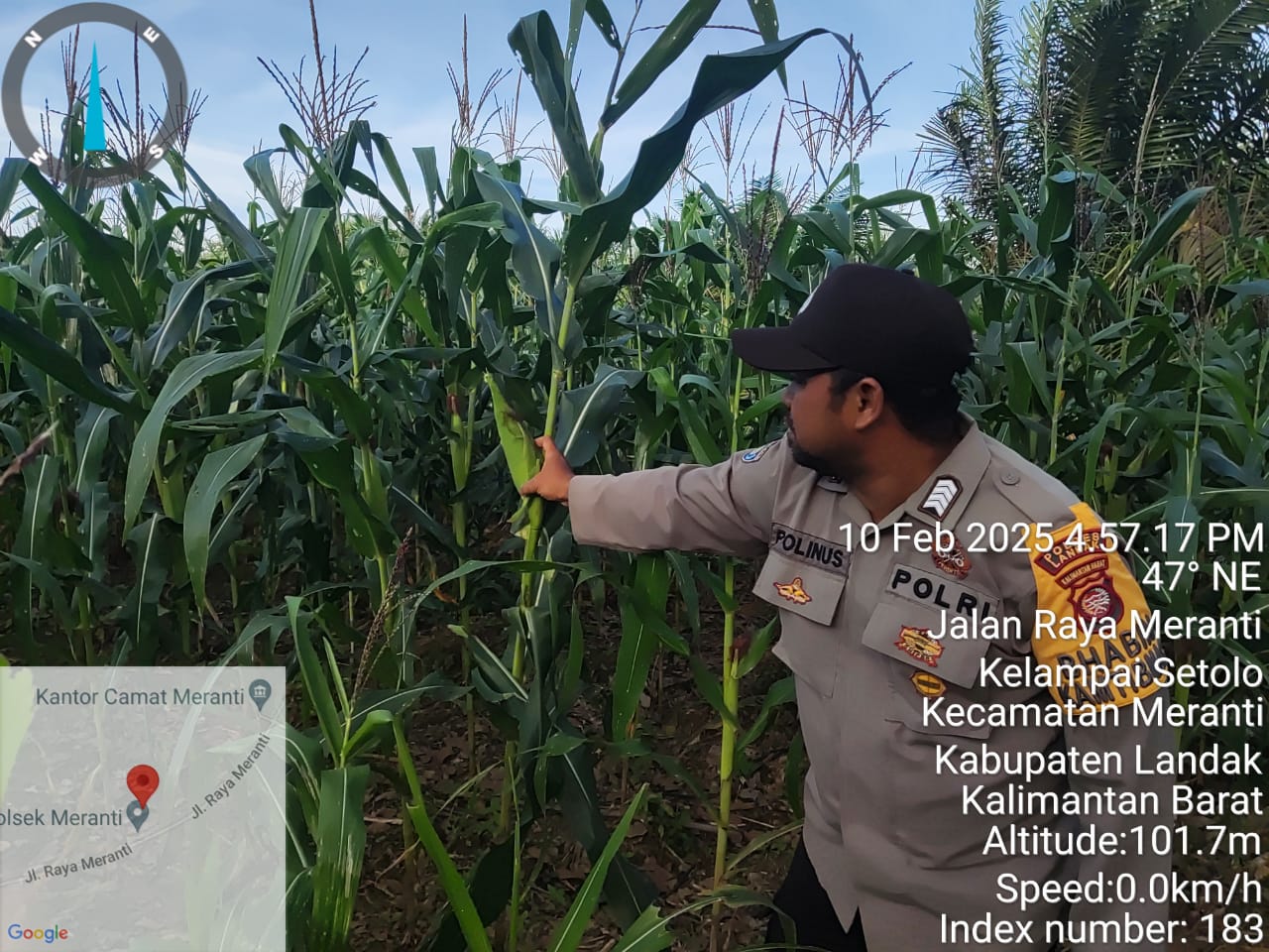 POLRES LANDAK – MERANTI POLDA KALBAR, Menjelang sore hari anggota babinkamtibmas melakukan pengecekan. Dan mencabut gulma di lahan kebun jagung milik poktan bunga Kadak lokasi di Desa Meranti dusun Jelayan Kecamatan Meranti Kabupaten Landak pada hari, Senin (10/02/2025) sore hari