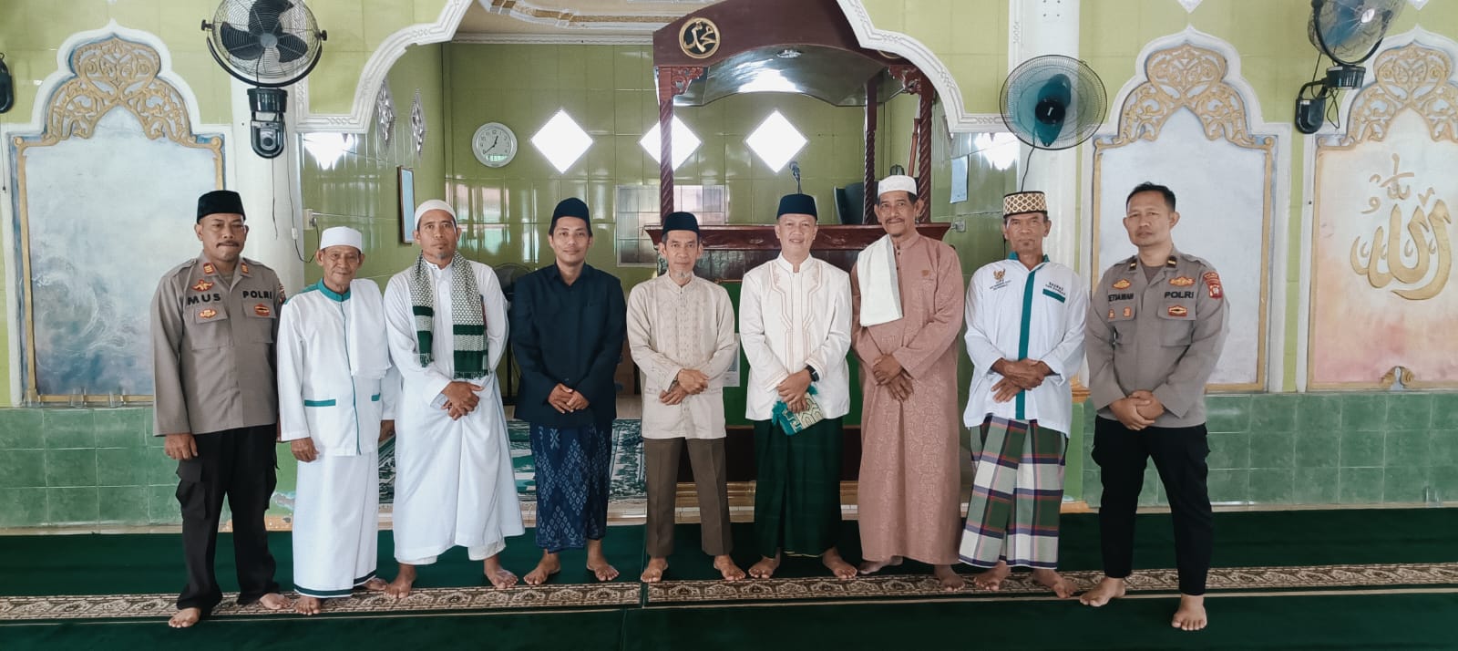 Wakapolsek Pemangkat bersama Kanit Binmas IPDA SETIAWAN yang tergabung dalam forkopimcam melaksanakan kegiatan safari jumat di Masjid Ainal Yakin di Desa Harapan Kecamatan Pemangkat Kab.Sambas. Jumat 14/03/2025.