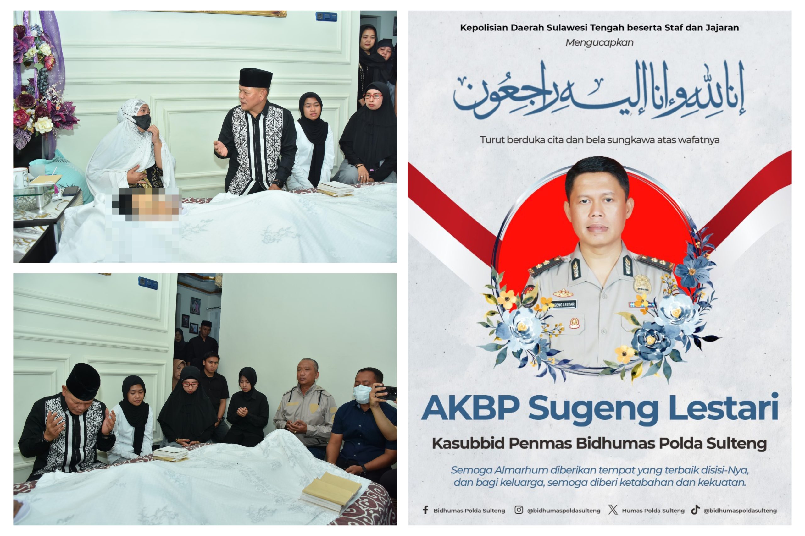 Almarhum mengembuskan napas terakhir di RS Bhayangkara Palu pada pukul 00.25 WITA. Kepergian AKBP Sugeng meninggalkan duka mendalam, khususnya bagi jajaran Polda Sulteng.