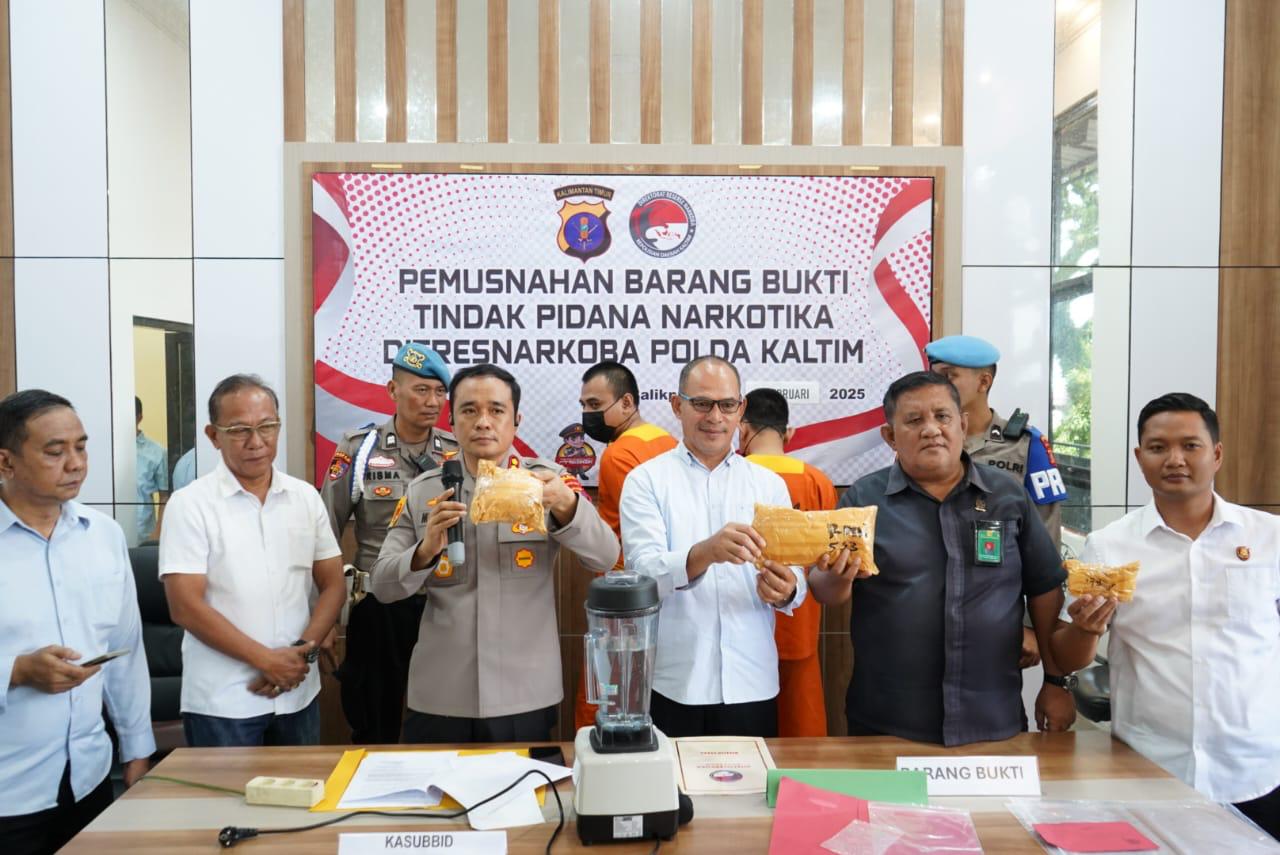 Balikpapan – Dalam rangka mendukung Program Asta Cita Presiden RI dalam memberantas Narkoba, Polda Kaltim melalui Direktorat Resnarkoba menggelar Pemusnahan Barang Bukti Narkotika jenis sabu seberat 987,21 bertempat di ruang Rapat Direktorat Reserse Narkoba Polda Kaltim, Selasa (11/02/25).
