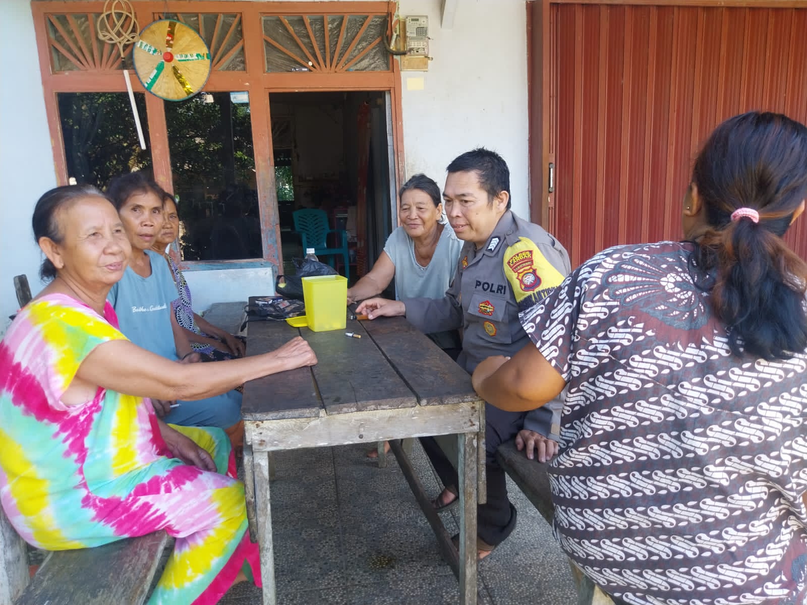 Di tengah momen tersebut, hadir sosok Bhabinkamtibmas yang dikenal bijaksana dan ramah. Dengan seragam dinas yang rapi dan sikap yang bersahaja, ia menghampiri para ibu dengan senyum hangat, lalu bergabung dalam perbincangan. Kehadirannya bukan sekadar patroli biasa, melainkan bentuk kepedulian nyata terhadap keselamatan warga.