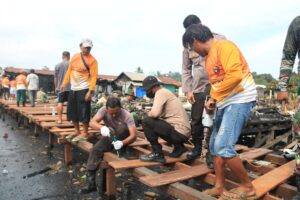 TNI-Polri dan Masyarakat Bersinergi Bangun Ulang Jembatan Kayu di Teluk Bayur