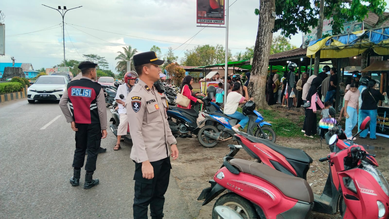 Dalam kegiatan tersebut, personel piket SPKT juga memberikan imbauan kepada para pedagang dan pengunjung agar tetap menjaga ketertiban, berhati-hati terhadap barang bawaan, serta memarkir kendaraan di tempat yang telah disediakan.