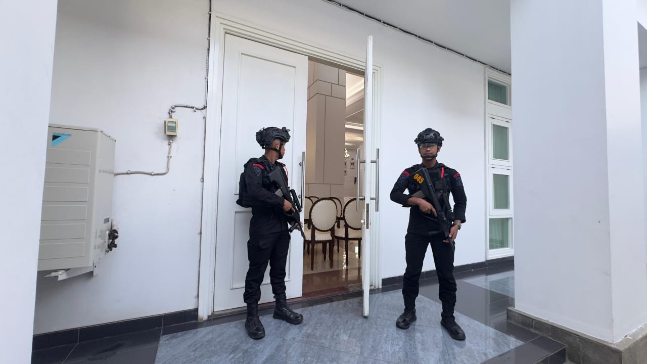 Pengamanan dimulai jauh sebelum acara berlangsung. Tim Penjinak Bom (Jibom) Gegana melakukan penyisiran menyeluruh di area kantor gubernur, mulai dari aula utama tempat pelantikan, jalur masuk-keluar tamu undangan, hingga lobi gedung. Pemeriksaan detail dilakukan untuk mencegah adanya potensi ancaman maupun benda berbahaya yang dapat mengganggu jalannya kegiatan.