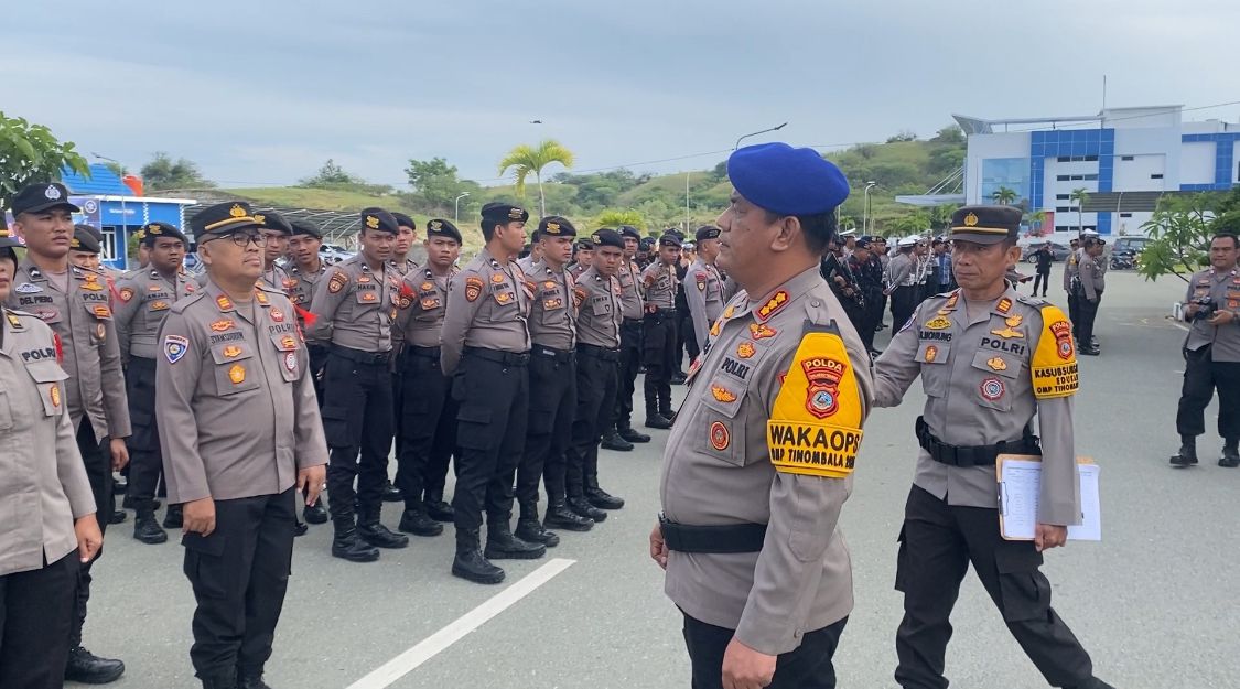 Palu, — Wakil Kepala Operasi (Wakaops) Operasi Mantap Praja (OMP) Tinombala 2024 Kombes Pol Muhammad Yudie Sulistiyo, S.I.K., melakukan pemeriksaan personel pengamanan di Kantor Komisi Pemilihan Umum (KPU) Provinsi Sulawesi Tengah (Sulteng), Minggu (25/8/2024)