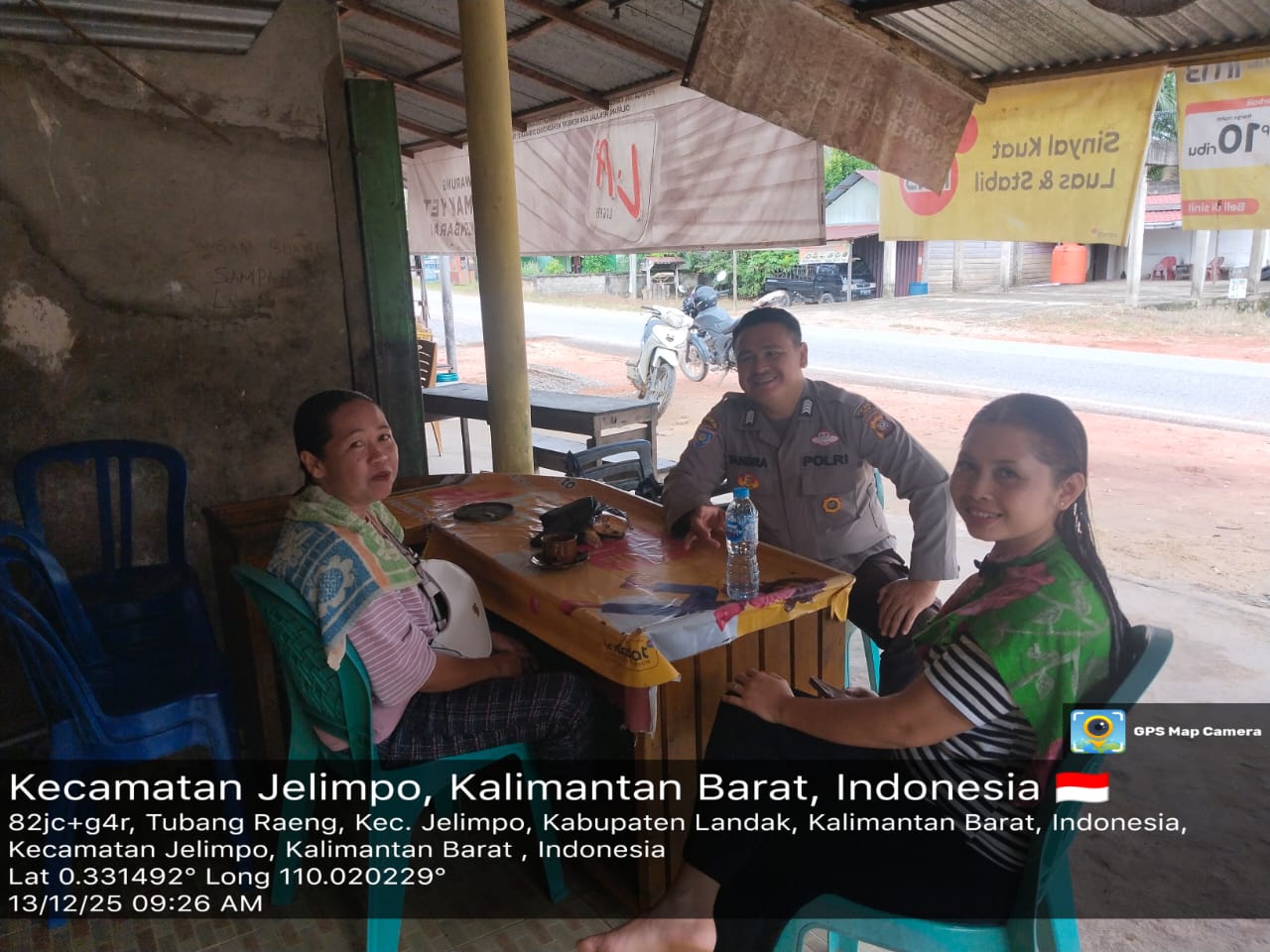 Polsek Ngabang – Polres Landak – Polda Kalbar, Personil Piket jaga Polsubsektor Jelimpo dan Polsek Ngabang melaksanakan giat patroli dialogis dan menyambangi masyarakat yang sedang melaksanakan aktivitas rutinitas, Kegiatan patroli ini dilakukan untuk memastikan kondusifitas wilayah berjalan aman dan Kondusif. Sabtu (13/12/2025).