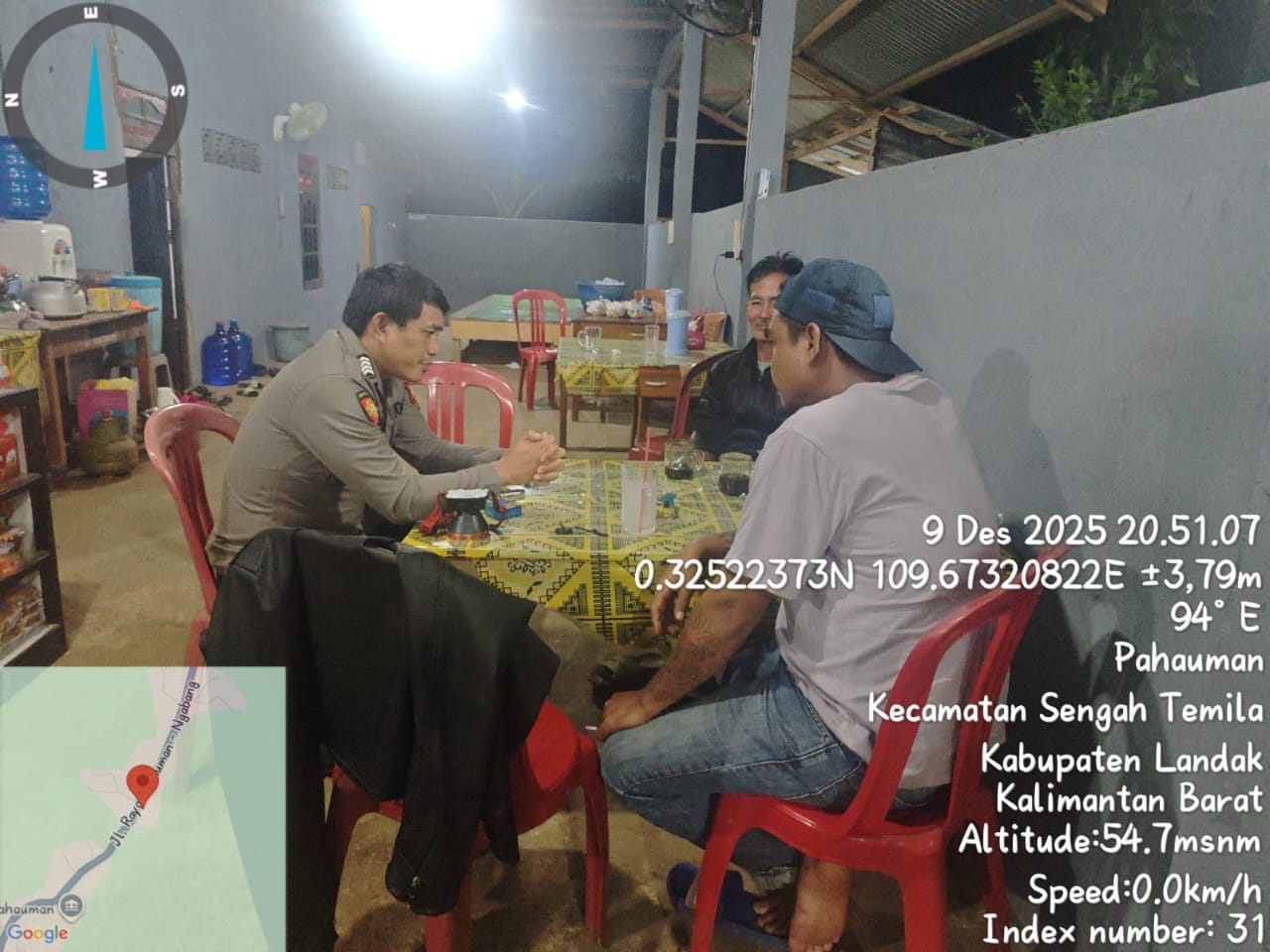 Polsek Sengah Temila ~Polres Landak ~ Polda Kalbar ~ Pada Selasa malam (9/12/2025), suasana Desa di wilayah Kecamatan Sengah Temila tampak berbeda dari biasanya. Dalam patroli rutinnya, petugas piket Polsek Sengah Temila tidak hanya berkeliling memastikan keamanan, tetapi juga menyempatkan diri berhenti, menyapa, dan duduk bersama warga yang sedang berkumpul.