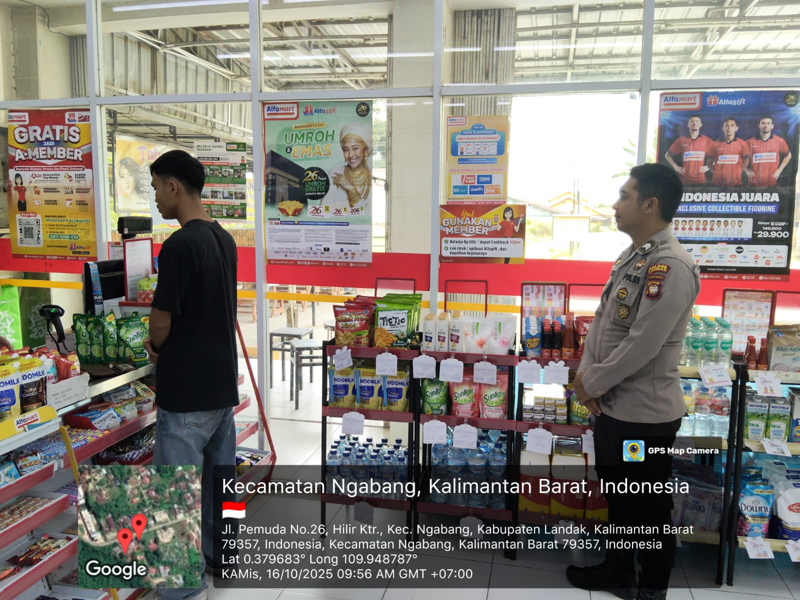 Polsek Ngabang – Polres Landak – Polda Kalbar, Patroli dialogis ditempat-tempat masyarakat berkumpul seperti cafe, warung kopi dan Warung Sembako itu merupakan Strategi pihak Kepolisian khususnya Polsek Ngabang Untuk menciptakan situasi yang kondusif, Kegiatan tersebut dilakukan untuk memastikan situasi di wilayah hukum Polsek Ngabang berjalan aman dan Kondusif. Kamis, (16/10/2025)