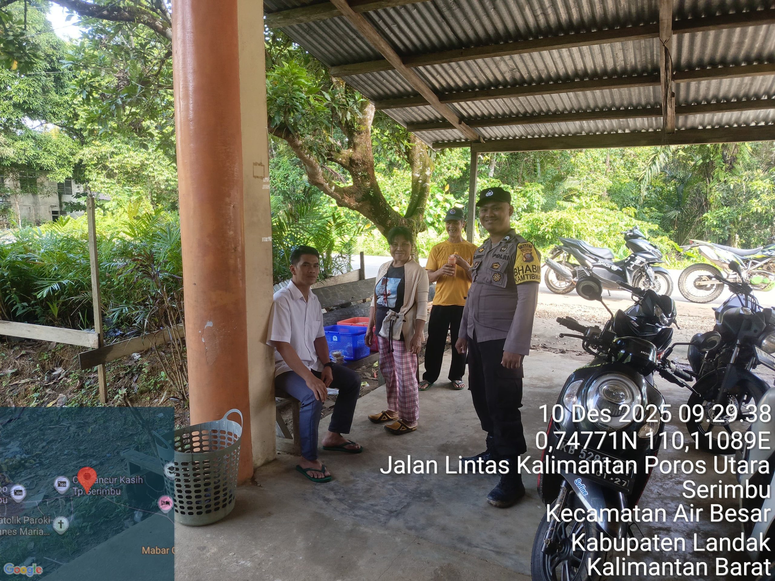 Polsek Air Besar ~ Polres Landak ~ Polda Kalbar ~ Rabu (10/12/2025), suasana siang di wilayah Kecamatan Air Besar tampak lebih hidup ketika jajaran Polsek Air Besar melaksanakan patroli rutin sekaligus menyapa warga yang beraktivitas. Patroli ini bukan sekadar memantau situasi, tetapi juga menjadi momen bagi polisi untuk mendekatkan diri kepada masyarakat.