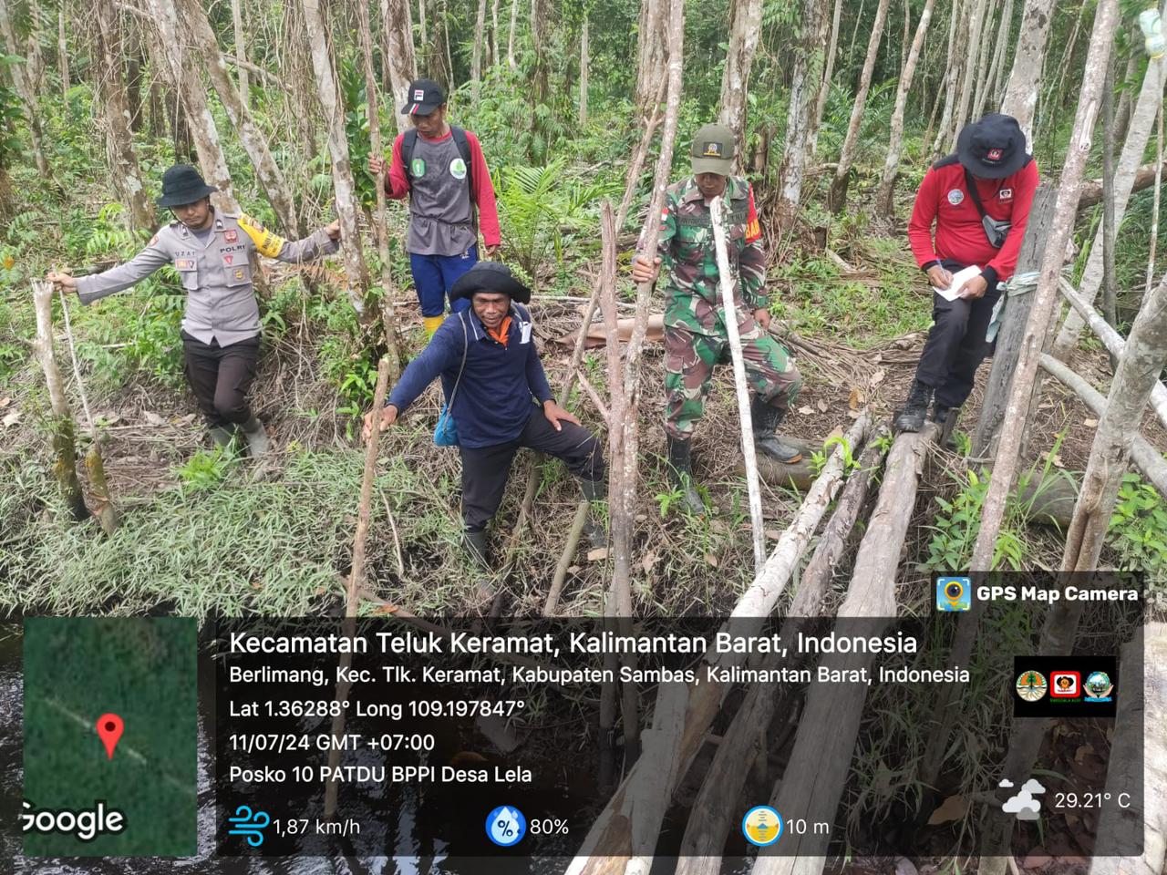 POLRES SAMBAS – Polda Kalbar | Polsek Teluk Keramat, Dalam upaya mencegah dan mengantisipasi terjadinya kebakaran hutan dan lahan (Karhutla), tim patroli gabungan yang terdiri dari anggota POLRI, TNI, Manggala Agni, dan masyarakat setempat melaksanakan patroli di Desa Lela, Kecamatan Teluk Keramat, Kabupaten Sambas. Patroli yang dimulai pada pukul 09.30 WIB ini bertujuan untuk memonitor dan mengatasi potensi titik api di wilayah tersebut.