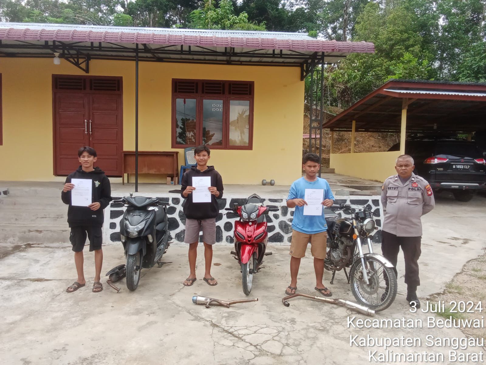 Pada hari Rabu tanggal 3 Juli 2024 sekira jam 10.30 Wib telah dilaksanakan Kegiatan cipta kondisi Pengunaan Knalpot Brong di wilayah Hukum Kecamatan Beduai, Kabupaten Sanggau, Tahun 2024.