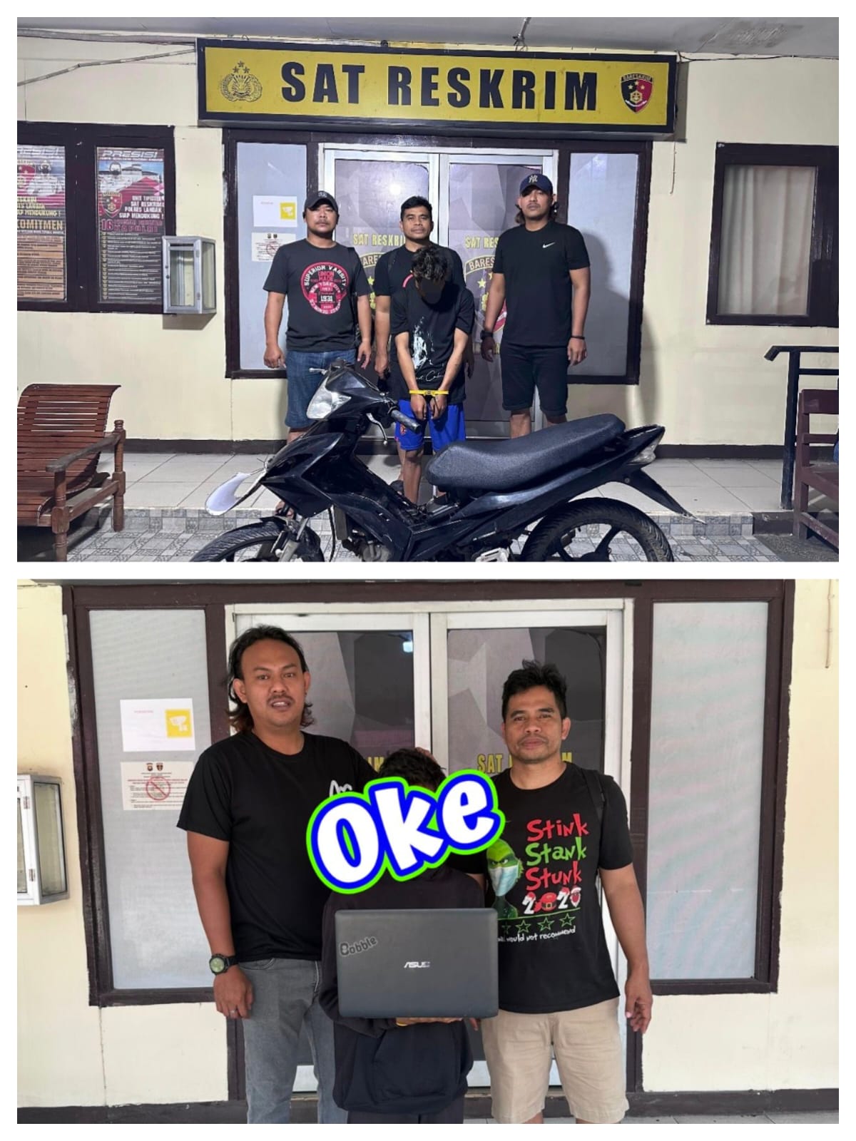 Berdasarkan laporan tersebut, tim Jatanras Satreskrim Polres Landak bergerak cepat. Tersangka pencurian sepeda motor berinisial M terlebih dahulu berhasil diamankan. Keesokan harinya, tersangka pencurian laptop berinisial R juga berhasil ditangkap. Saat ini, kedua pelaku telah diamankan di Polres Landak guna menjalani pemeriksaan lebih lanjut
