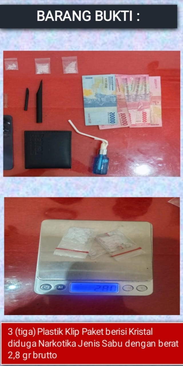 Pelaku diamankan di area pondok di tengah Perkebunan sawit di Desa Air Upas kecamatan Air Upas. Saat petugas mengamankan pelaku yang disaksikan perangkat warga setempat, petugas mendapati dari tangan pelaku sejumlah barang bukti berupa 3 plastik klip berisi kristal diduga narkotika jenis sabu dengan berat 2,8 gram brutto, 1 buah bong, 1 buah sendok takar sabu, 1 buah handphone, 1 buah kaca fanbo serta uang tunai 550 ribu rupiah.