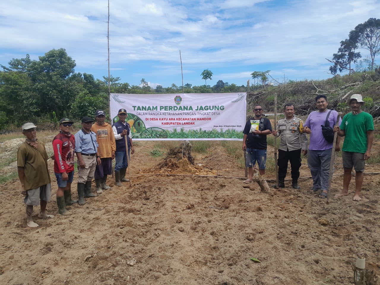 Kapolsek Mandor IPTU Yulianus van Chanel, TK, S.I.P, melalui Bhabinkamtibmas Desa Kayuara Bripka Dingin Siahaan, menyampaikan bahwa kegiatan penanaman jagung ini merupakan bentuk nyata sinergi antara kepolisian, pemerintah desa, dan masyarakat dalam mendukung ketahanan pangan nasional.