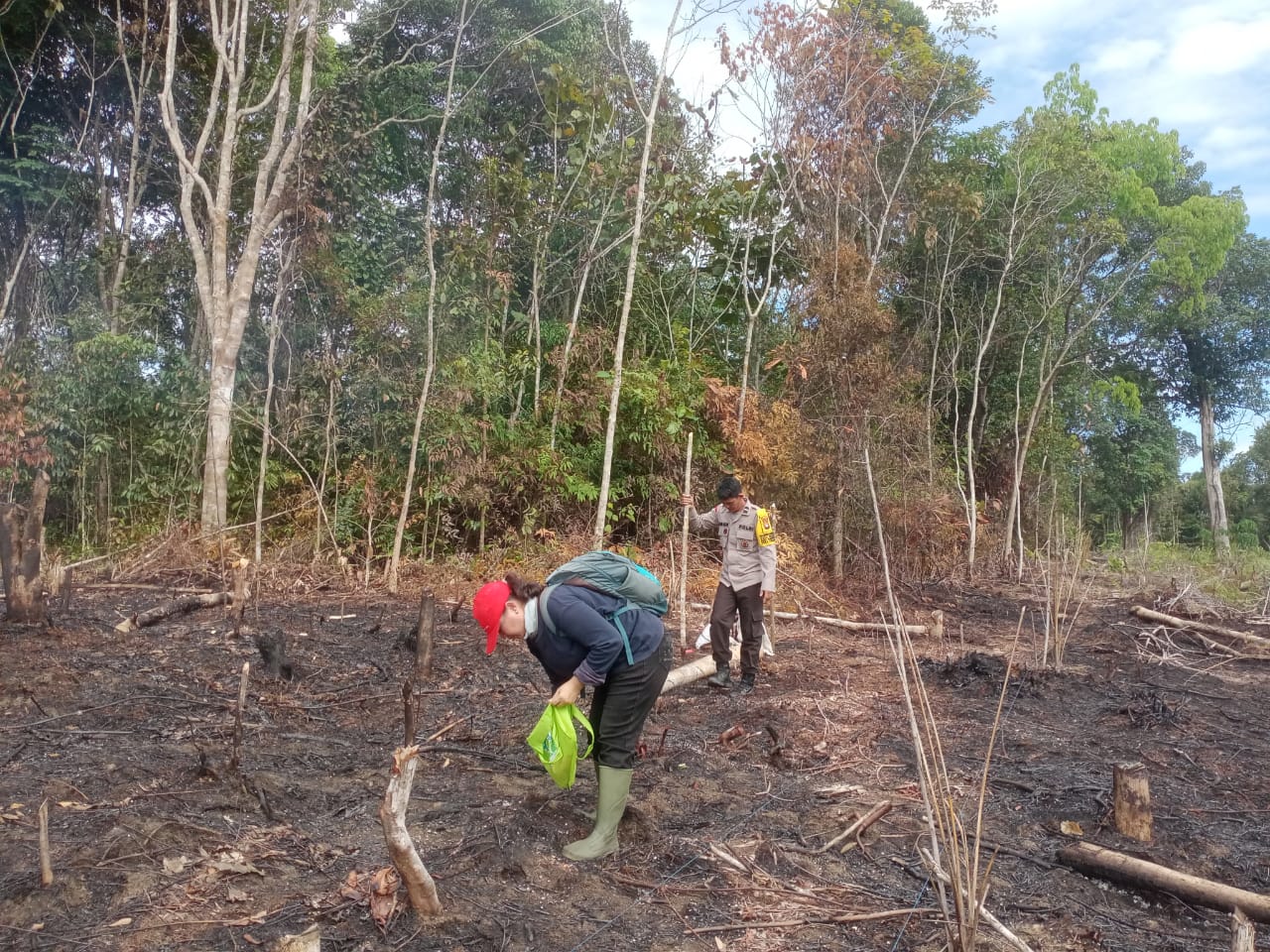 Kegiatan penanaman ini turut dihadiri oleh sejumlah pihak, antara lain Bhabinkamtibmas Desa Manggang Aipda Uber, Penyuluh Pertanian Lapangan (PPL) Desa Manggang Susilawati, S.P., serta pemilik lahan, Saki Hermanto.