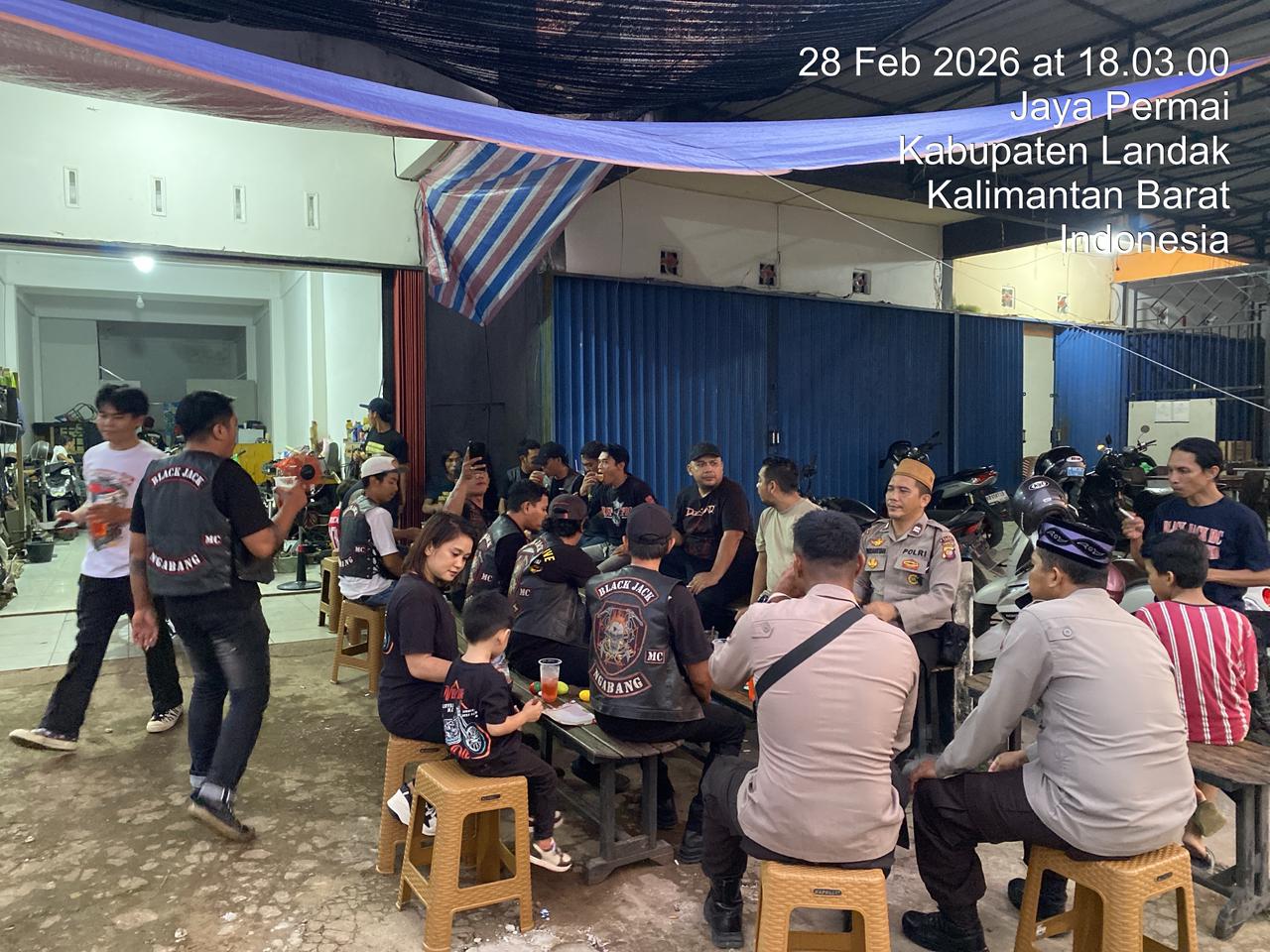 Polres Landak ~ Polda Kalbar ~ Dalam suasana penuh kehangatan dan kebersamaan di bulan suci Ramadhan, Ketua Komunitas Motor Black Jack, Sdra. Julius Saragih, bersama seluruh anggota komunitas menggelar kegiatan buka puasa bersama (bukber) dengan Satbinmas Polres Landak. Kegiatan tersebut berlangsung di Sekretariat Black Jack yang berlokasi di Desa Raja Ngabang, Sabtu (28/2/2026).