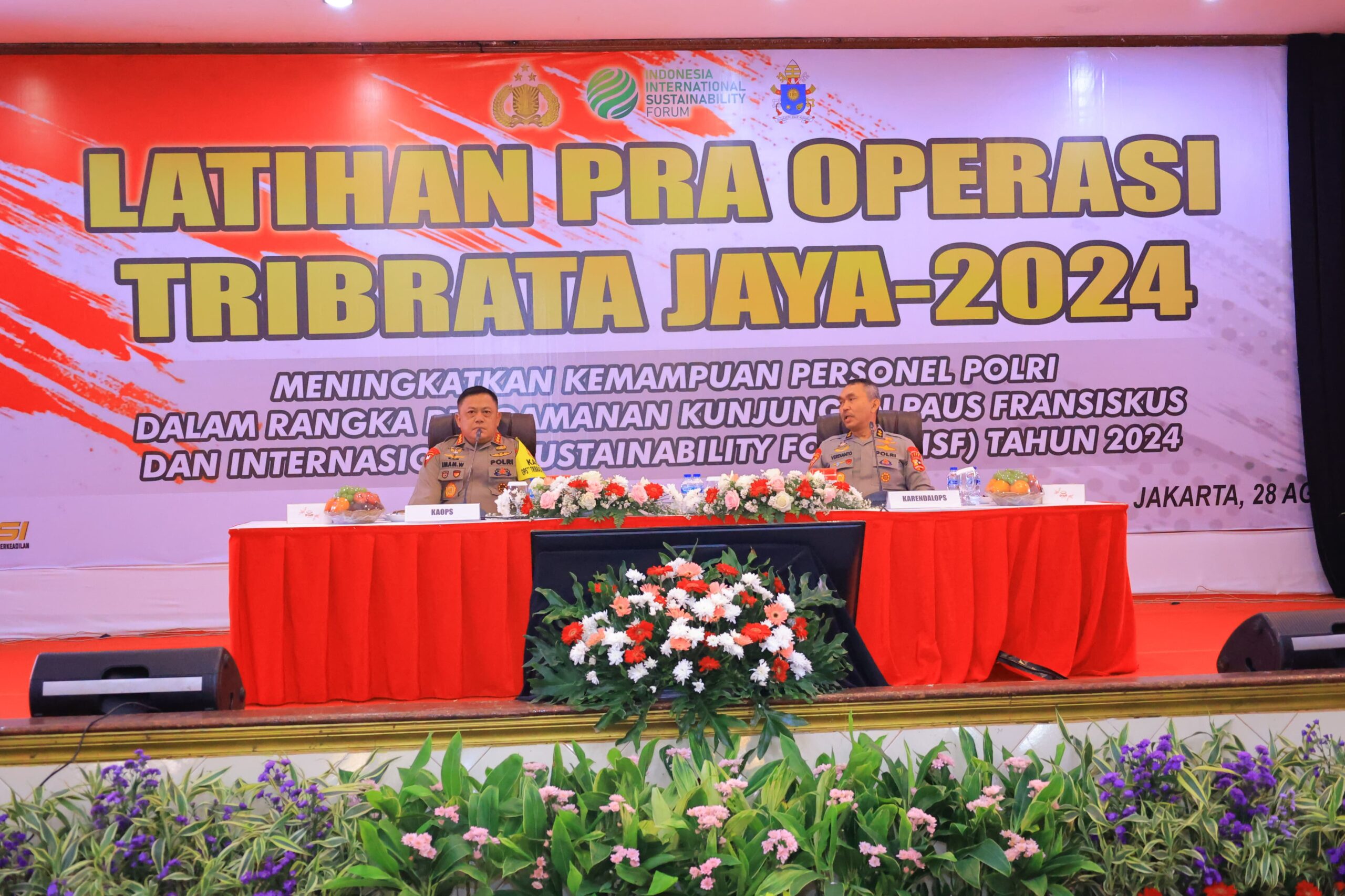 Kaops Tribrata Jaya 2024 Komjen Pol Imam Widodo mengatakan, latihan pra Operasi Tribrata Jaya 2024 ini dilakukan untuk menyamakan pola pikir dan pola tindak, serta meningkatkan kemampuan dan keterampilan personel Polri yang bertugas dalam rangka pengamanan kegiatan kunjungan Paus Fransiskus dan kegiatan International Sustainability (ISF) tahun 2024.
