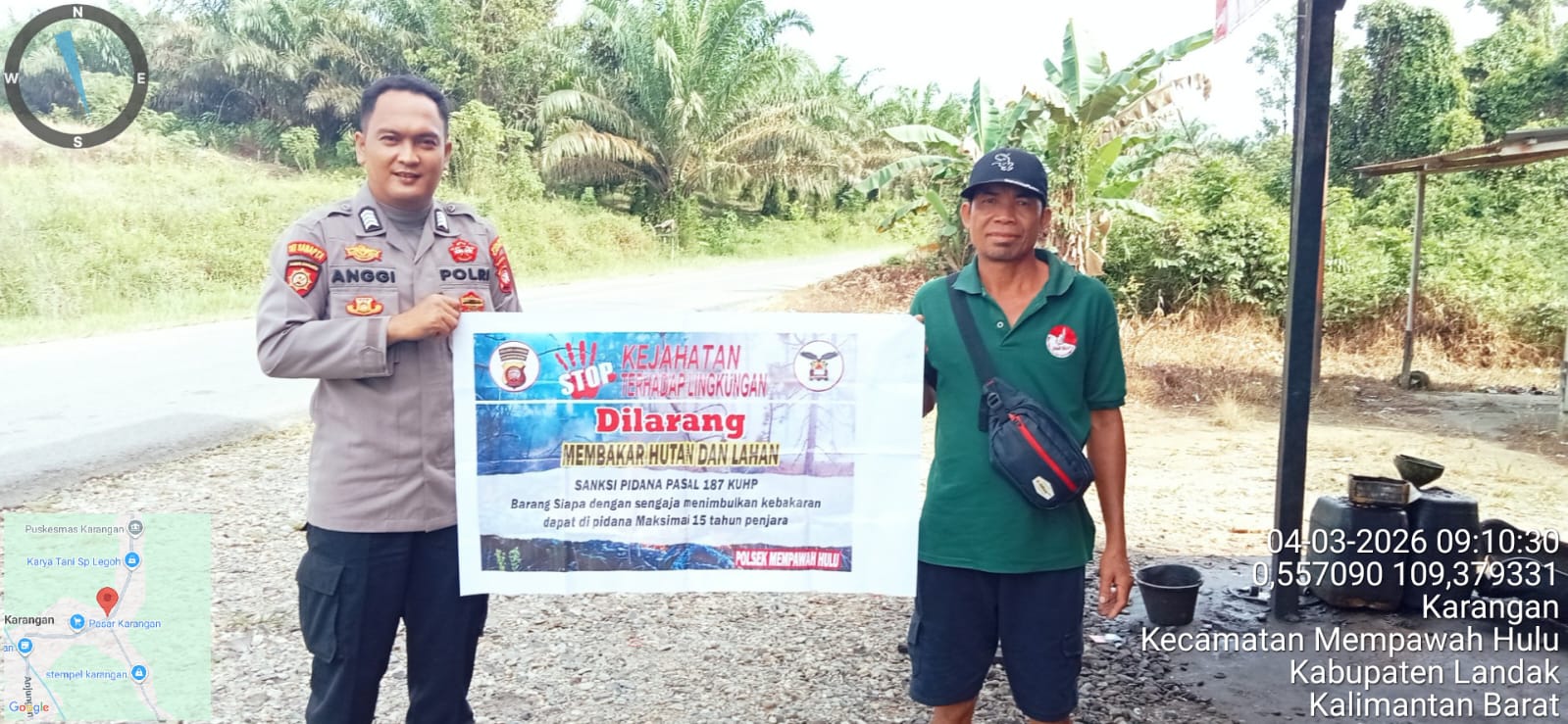 Mempawah Hulu, – Dalam upaya mencegah terjadinya kebakaran hutan dan lahan (karhutla), Personel Polsek Mempawah Hulu terus menggencarkan kegiatan sosialisasi kepada masyarakat di wilayah Kecamatan Mempawah Hulu, Rabu (4/3/26).