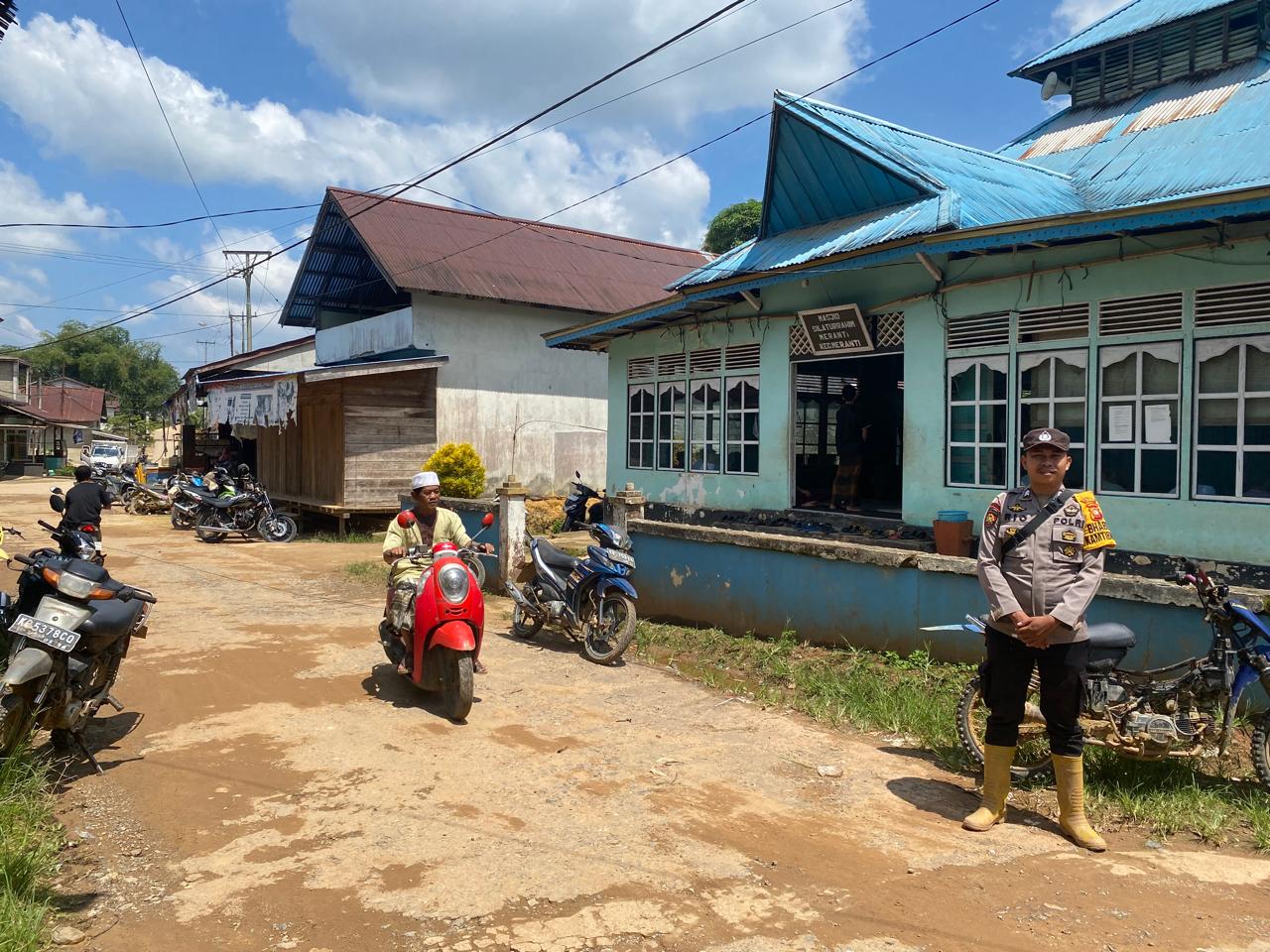Kehadiran Anggota Unit Samapta Polsek Meranti laksanakan pengamanan dan Patroli Kegiatan Ibadah Sholat Jumat di Masjid Silaturahim Di dusun Meranti Hulu Desa Meranti Kabupaten Landak, Jumat. (12/09/2025).