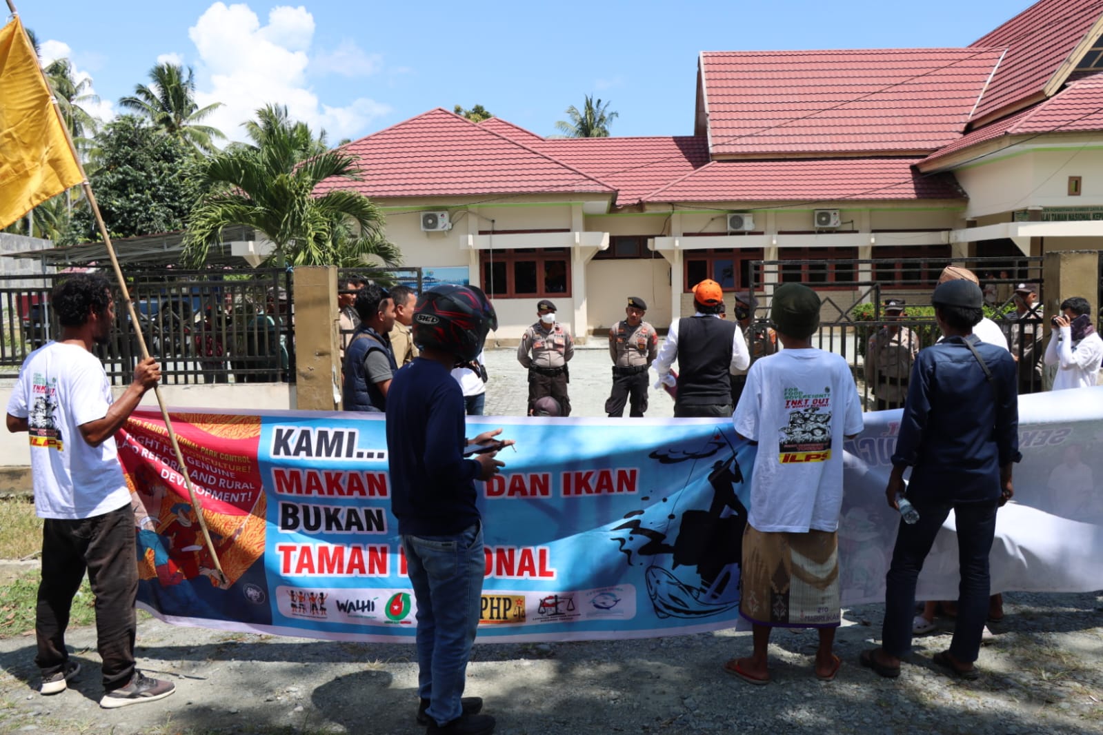 Touna – Personil Polres Touna dan Polsek Ampana Kota laksanakan pengamanan aksi unjuk rasa dari Aliansi Yayasan Toloka Jaringan Walhi Sulteng di kantor Balai Taman Nasional Kepulauan Togean (BTNKT) Selasa Kemarin (30/7/24)