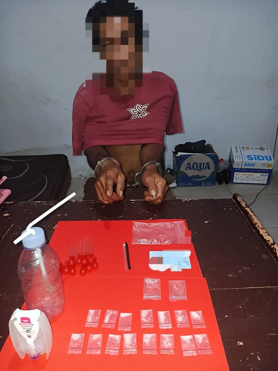 Dari lokasi, petugas menyita 15 paket kecil sabu dengan berat total 3,06 gram, satu buah bong (alat isap), dua potongan pipet, 10 kaca pirex, sejumlah plastik klip bening kosong, serta satu KTP milik pelaku.
