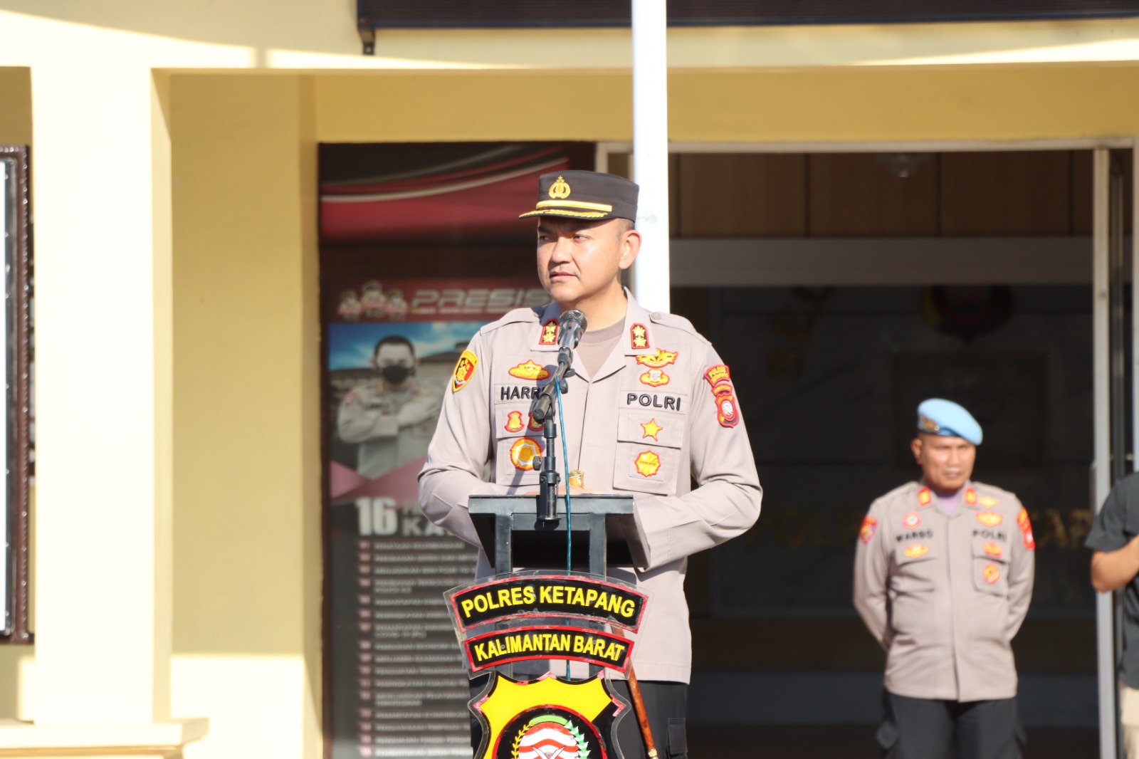 KETAPANG, Polda Kalbar – Kapolres Ketapang AKBP Muhammad Harris, S.H., S.I.K., M.I.K., CPHR memimpin langsung pelaksanaan apel pagi yang digelar di halaman Mapolres Ketapang, pada Selasa (05/08/2025). Apel pagi ini diikuti oleh para Pejabat Utama (PJU), perwira, bintara, dan ASN Polres Ketapang.