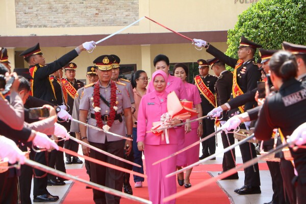 Tradisi farewell parade ini diawali dengan pengalungan bunga dan pemberian buket bunga oleh sepasang Polisi Cilik kepada pejabat lama dan isteri. Selanjutnya Irjen Yudhiawan disambut dengan tradisi pedang pora oleh sejumlah Perwira Pertama Polri, di lapangan Presisi Polda Sulut, Senin (30/9/2024) siang.