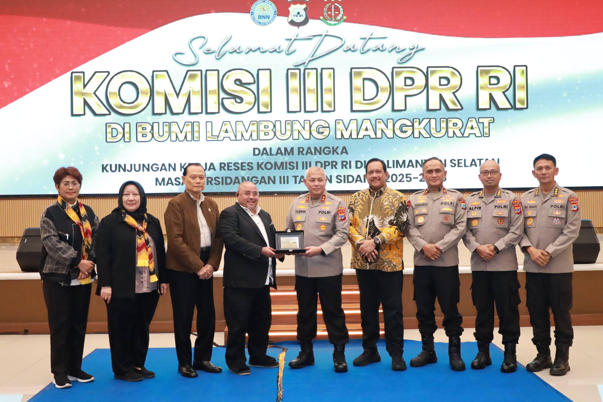 Komisi III DPR RI melakukan Kunjungan Kerja (Kunjungan Kerja) Reses Masa Persidangan III Tahun Sidang 2025-2026 di Provinsi Kalimantan Selatan. Pertemuan yang berlangsung di Auditorium Polda Kalsel, Banjarbaru, pada Rabu (4/3/2026) ini dihadiri oleh jajaran Polda Kalsel, Kejaksaan Tinggi (Kejati) Kalsel, dan BNNP Kalsel.