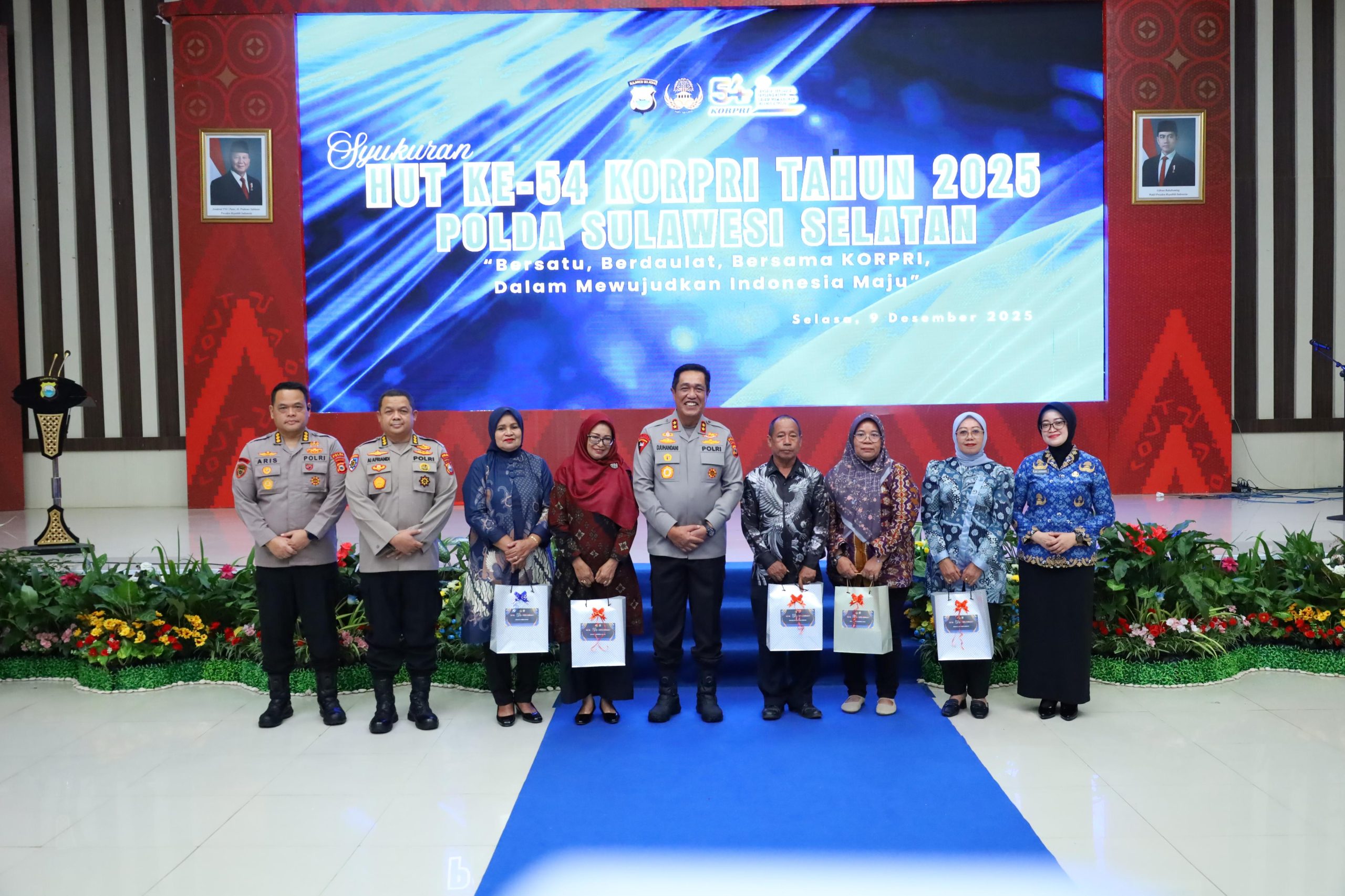 Sulsel ~ Kepolisian Daerah Sulawesi Selatan menggelar acara Syukuran dalam rangka Hari Ulang Tahun (HUT) Ke-54 Korps Pegawai Republik Indonesia (Korpri) Tahun 2025 di Aula Mappaoddang Mapolda Sulsel, Selasa (09/12/2025). Kegiatan tersebut dihadiri langsung oleh Kapolda Sulawesi Selatan Irjen Pol. Djuhandhani Rahardjo Puro, S.H., M.H.