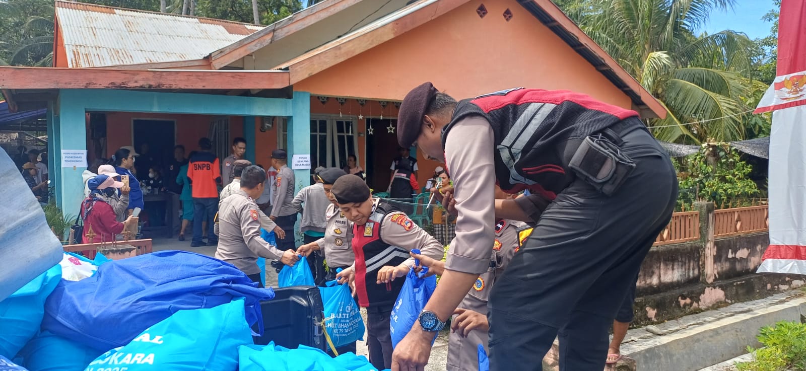 Poso – Kepedulian Polri kembali diwujudkan melalui penyaluran bantuan bagi masyarakat yang terdampak gempa bumi berkekuatan magnitudo 6,0 di Kecamatan Poso Pesisir, Kabupaten Poso. Bantuan berupa paket sembako tersebut diserahkan pada Minggu (17/8/2025) siang, di Desa Masani.