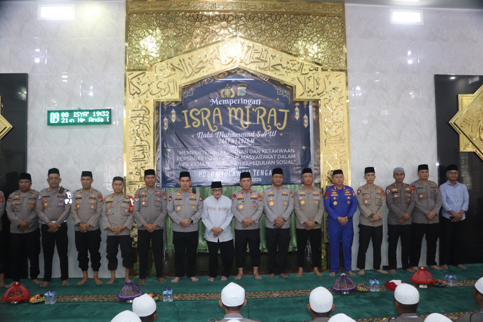 Palu – Kepolisian Daerah (Polda) Sulawesi Tengah ( Sulteng) bersama Bhayangkari menggelar peringatan Isra Mi’raj Nabi Muhammad SAW 1447 Hijriah/2026 M yang berlangsung khidmat di Masjid Ar-Rahman .