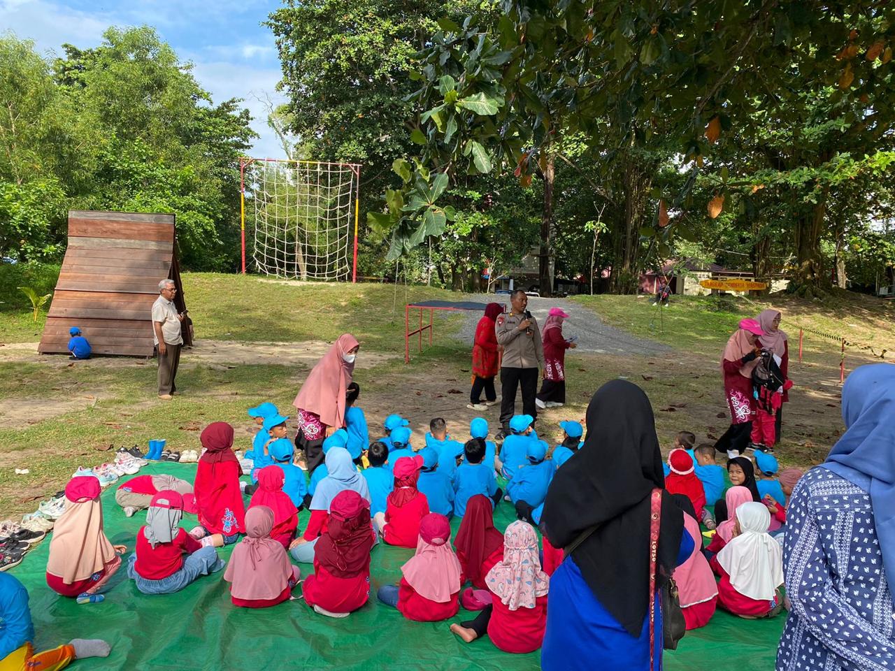Kegiatan ini juga melibatkan anak-anak dari TK Islam Rahmaniyah Kota Balikpapan dengan pendampingan oleh Pasimin Batalyon A Pelopor AKP Agus Susanto bersama tim.