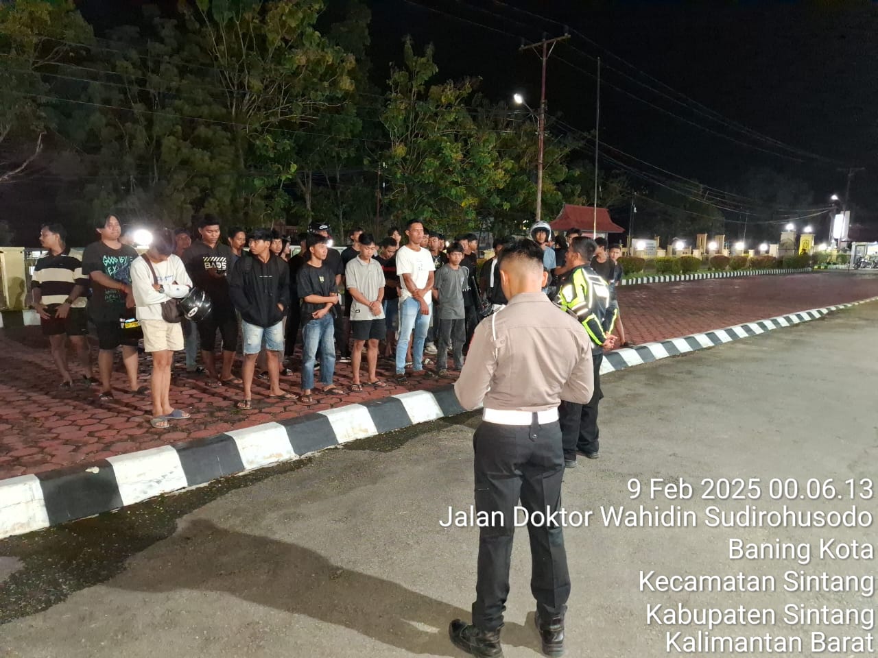 Sintang – Puluhan remaja yang menggunakan knalpot brong ditindak oleh pihak kepolisian dalam patroli di kawasan Jl. Dr. Wahidin, tepatnya di Simpang Polres Sintang, pada Sabtu (8/2) sekitar pukul 23.00 WIB.