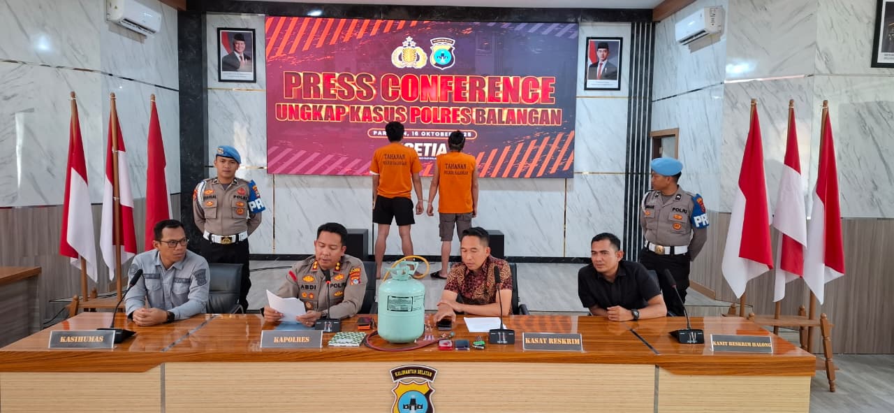 PARINGIN, – Polres Balangan menggelar konferensi pers pengungkapan kasus penipuan berkedok perekrutan karyawan PT Jhonlin Baratama di Mapolres Balangan, Paringin, Rabu (16/10/2025).
