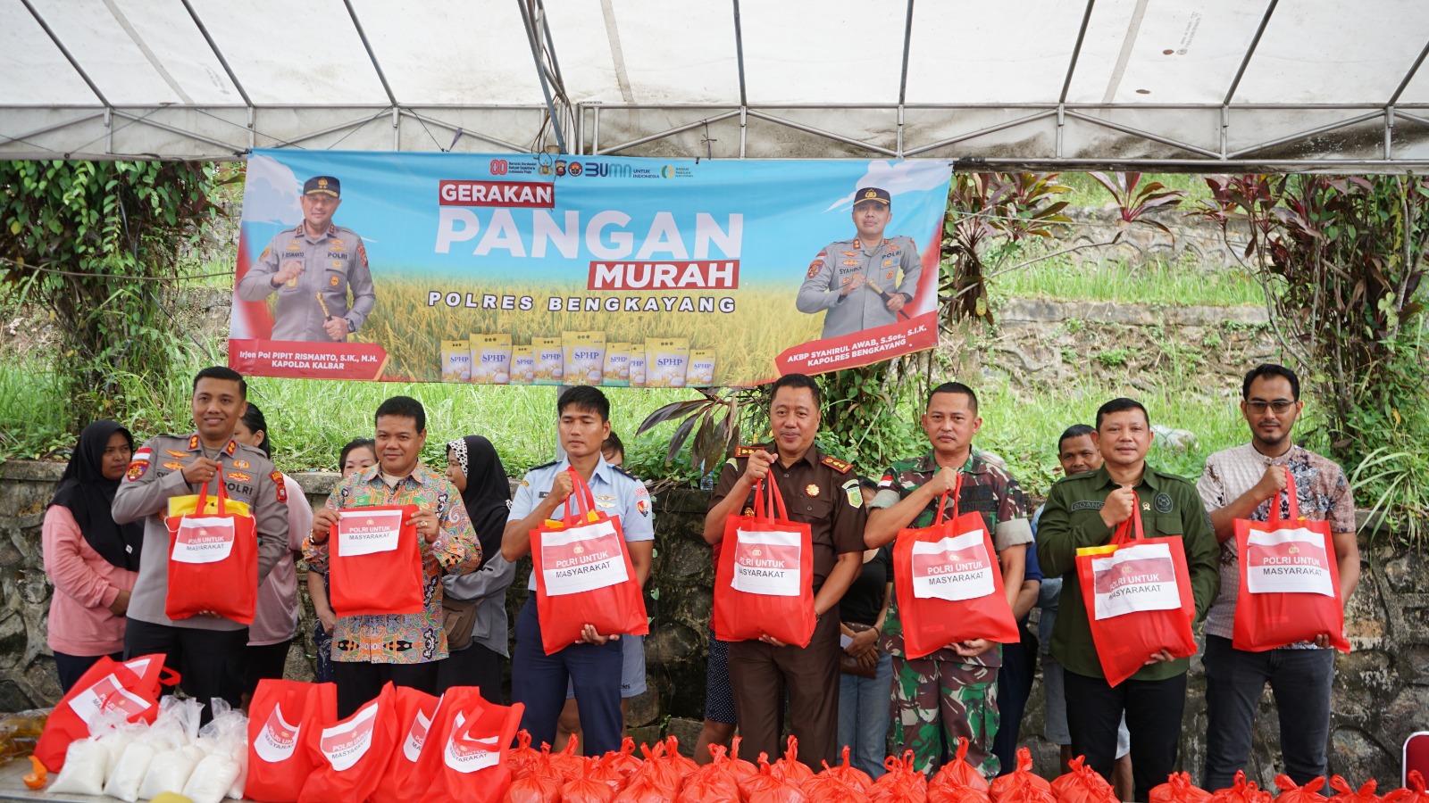 Di Kabupaten Bengkayang, Kapolres AKBP Syahirul Awab menjelaskan bahwa pihaknya menargetkan 1.000 warga penerima manfaat, dengan total 5 ton beras yang dibagikan, 2 ton oleh Polres Bengkayang dan 3 ton di Polsek Jajaran Polres Bengkayang. Selain beras, tersedia pula minyak goreng, gula pasir, dan telur ayam dengan harga di bawah Harga Eceran Tertinggi (HET).