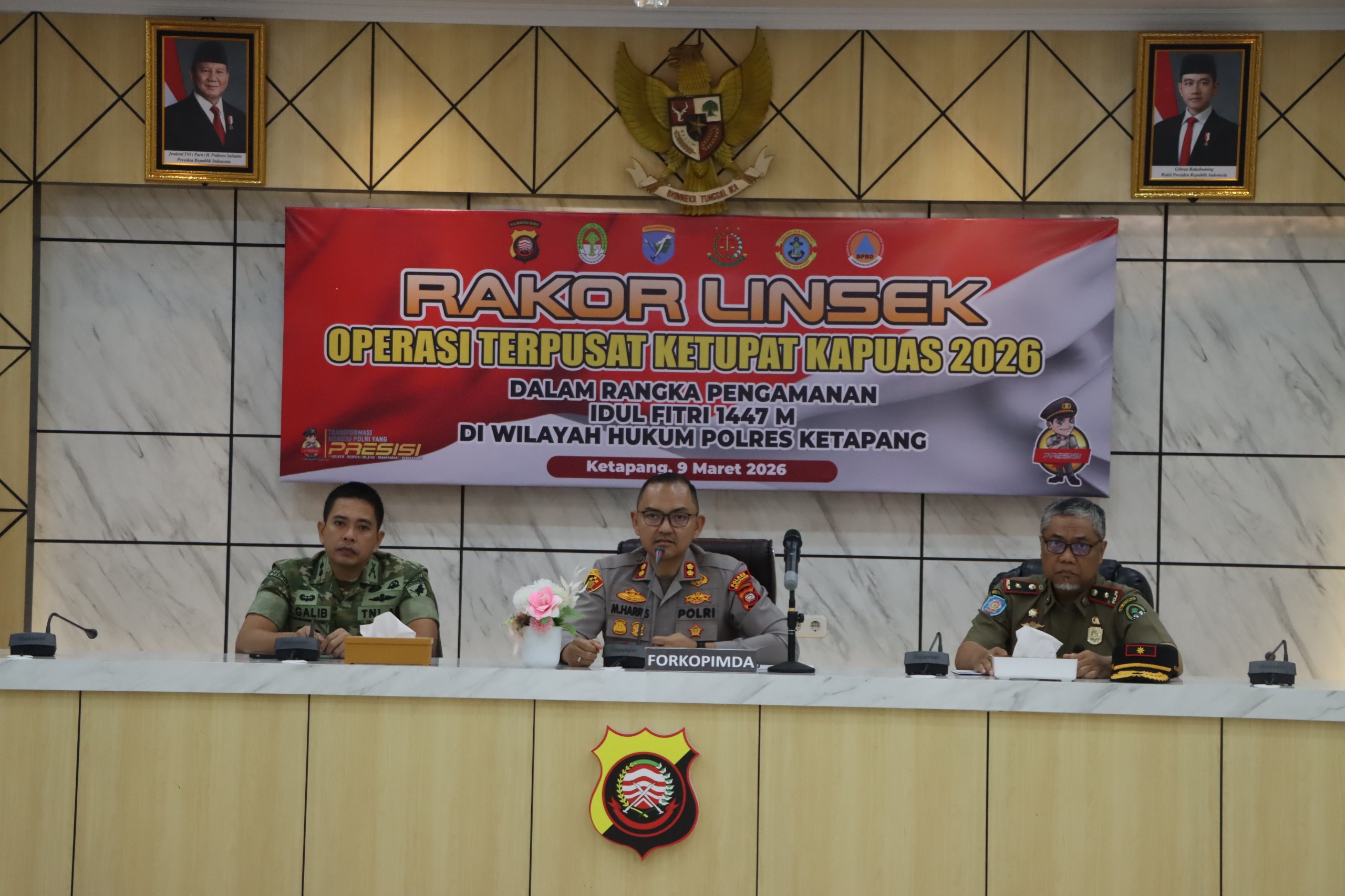 KETAPANG, Polda Kalbar – Dalam rangka memastikan kesiapan pengamanan Hari Raya Idul Fitri 1447 Hijriah, Polres Ketapang menggelar kegiatan Rapat Koordinasi Lintas Sektoral (Rakor Linsek) Operasi Terpusat “Ketupat Kapuas-2026” yang dilaksanakan di wilayah hukum Polres Ketapang. Kegiatan ini bertujuan untuk memperkuat sinergitas dan koordinasi antar instansi dalam menciptakan situasi yang aman, tertib dan kondusif selama perayaan Idul Fitri (09/03/2026).