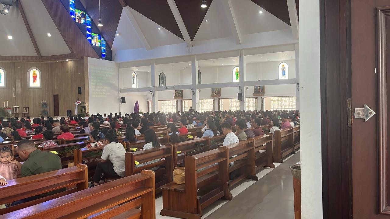 Umat Kristiani yang mengikuti ibadah tampak khusyuk dan merasa tenang dengan kehadiran aparat kepolisian. Mereka mengapresiasi langkah Polres Ketapang dalam menciptakan suasana yang aman selama perayaan berlangsung.
