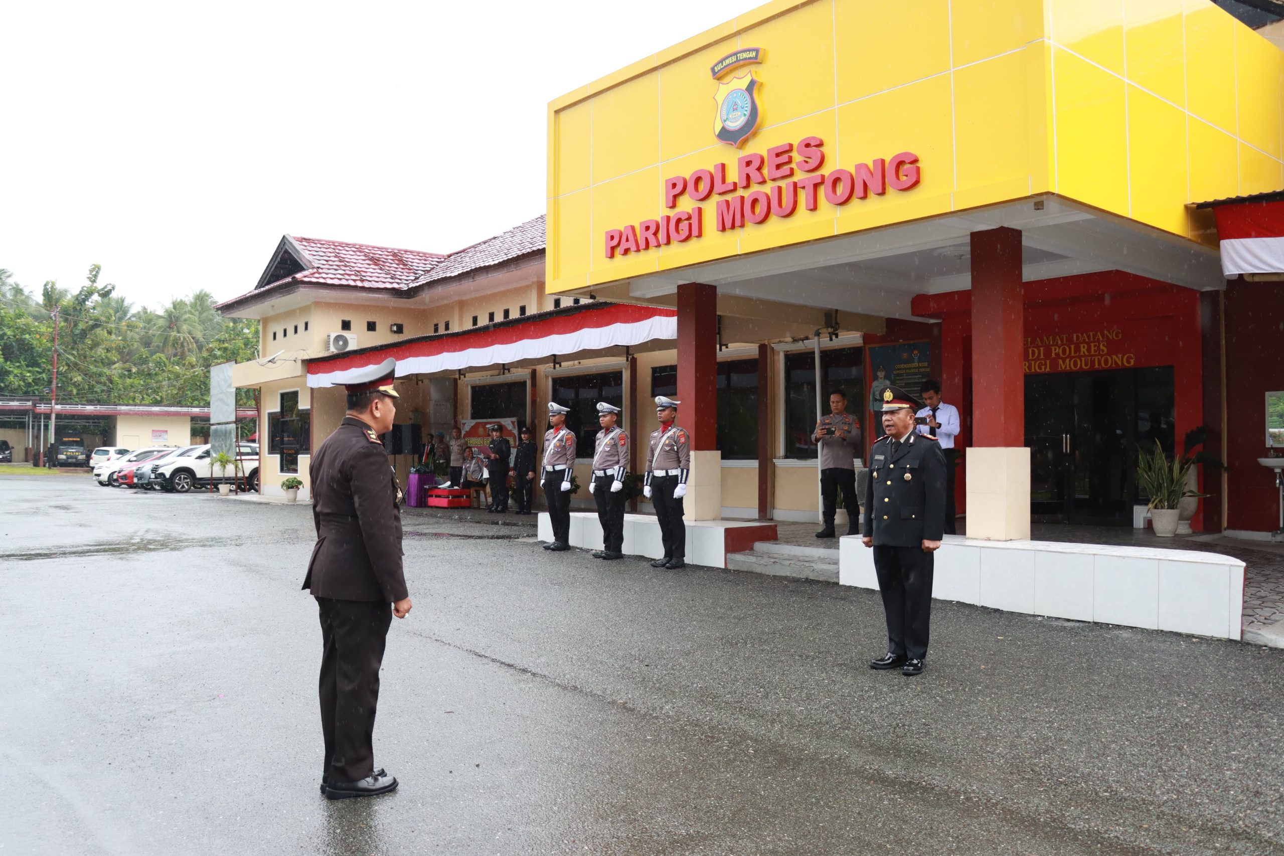 Pada momentum sakral tersebut, bertindak selaku Perwira Upacara adalah Kasat Samapta Polres Parigi Moutong, AKP Mattan Songgo. Sedangkan Komandan Upacara dipercayakan kepada Paur Samsat Polres Parigi Moutong, Ipda I Putu Widiasa. Inspektur Upacara dipimpin langsung oleh Kapolres Parigi Moutong, yang pada kesempatan ini diwakili oleh Wakapolres Parigi Moutong, Kompol Romy Gafur, S.H., M.H.