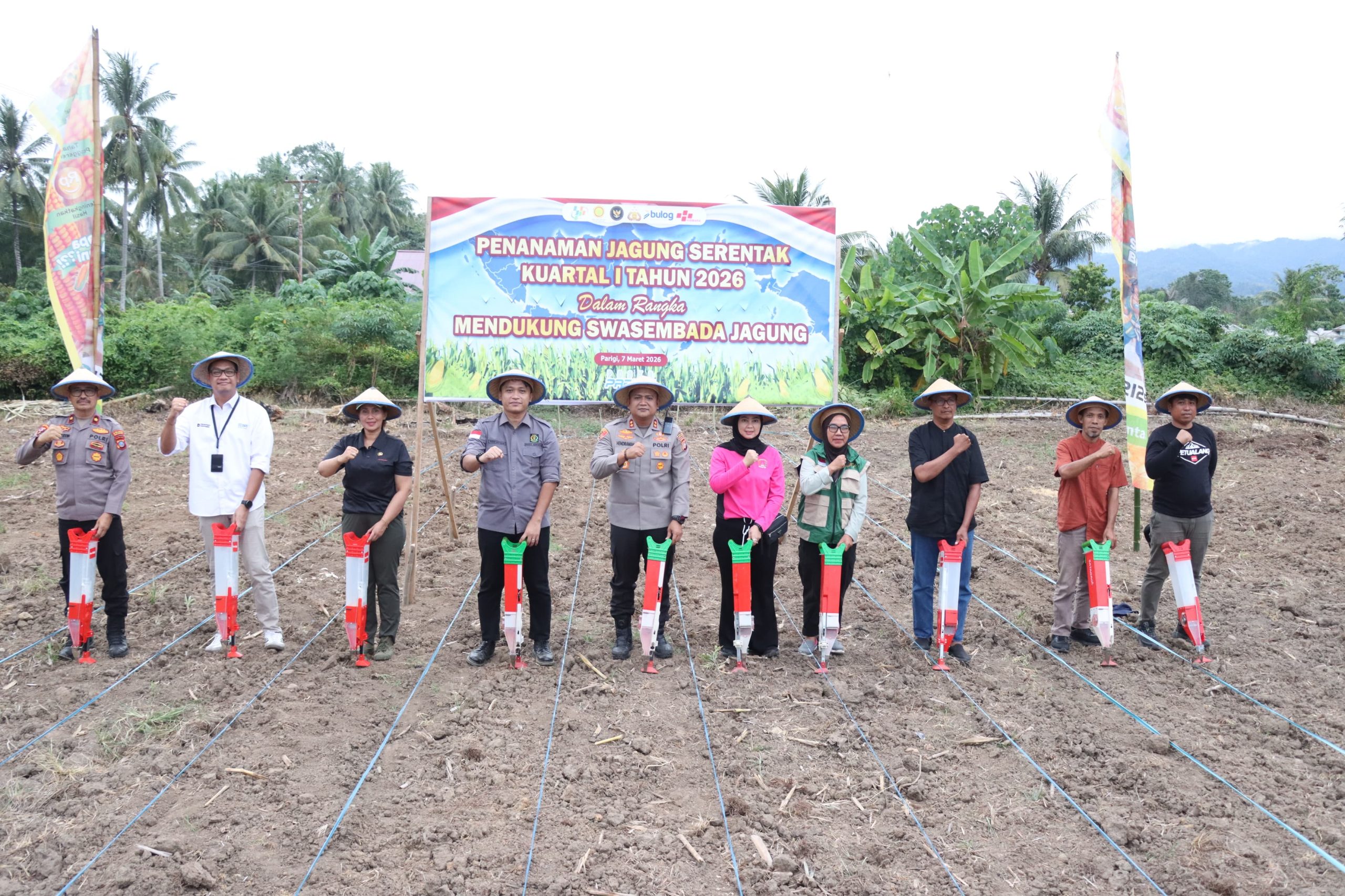 Parigi, 7 Maret 2026 – Komitmen memperkuat ketahanan pangan nasional terus digencarkan di daerah. Kapolres Parigi Moutong, Hendrawan A. N memimpin langsung kegiatan Penanaman Jagung Serentak Kuartal I Tahun 2026 sebagai langkah nyata mendukung program swasembada jagung nasional.
