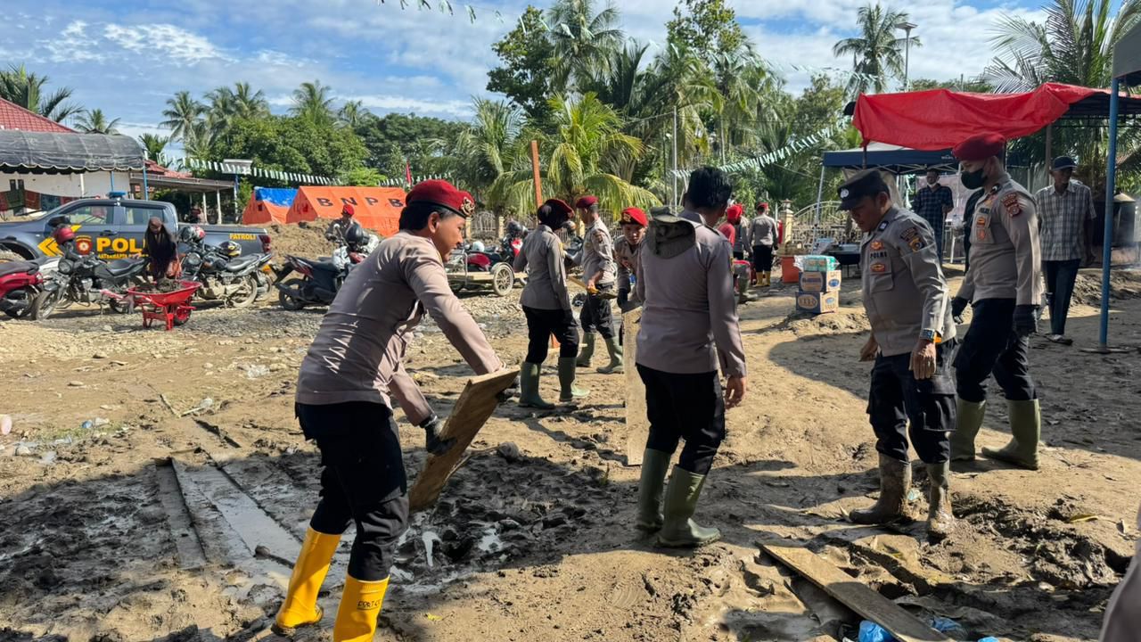 Kegiatan yang digelar pada Jumat, 19 Desember 2025 ini melibatkan personel Polres Pidie Jaya, personel Brimob BKO Polres Pidie Jaya, Personel Polsek Meureudu, Polsek Bandar Baru, Polsek Meurah Dua, serta Polsek Tringgadeng. Seluruh personel turun langsung membersihkan fasilitas umum yang terdampak lumpur luapan banjir.