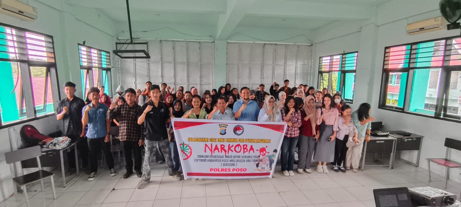 Pembinaan dan Penyuluhan Hukum terkait Bahaya Penyalahgunaan Narkoba bertempat di Universitas Sintuwu Maroso Poso yang dilaksanakan oleh jajaran Satresnarkoba Polres Poso bersama BNN Kabupaten Poso kepada masyarakat khususnya kalangan pelajar dan mahasiswa. Rabu(11/3/26).