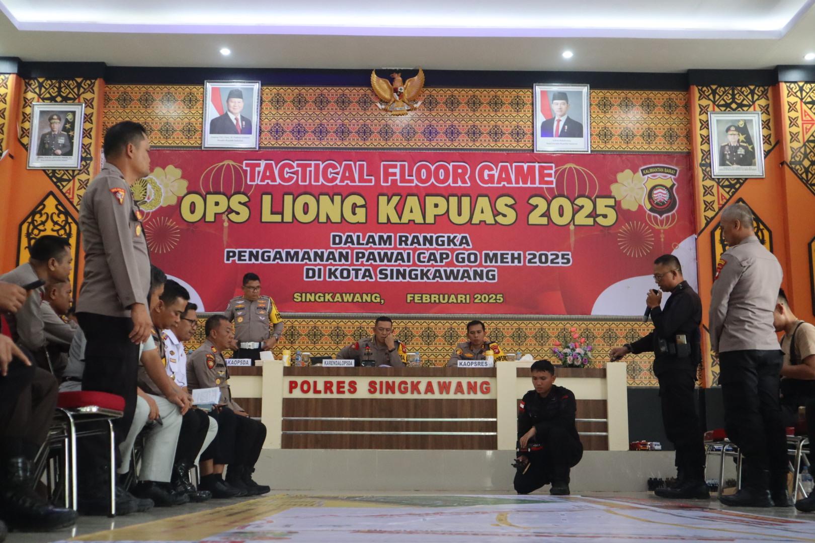 SINGKAWANG, Polda Kalbar- Polres Singkawang, Telah melaksanakan kegiatan Tactical Floor Game (TFG) sebagai bagian dari persiapan pengamanan Ops Liong Kapuas 2025 dalam rangka pengamanan pawai Cap Go Meh, yang akan diselenggarakan di Kota Singkawang, Kegiatan TFG dilaksanakan di Aula Sarja Arya Racana Polres Singkawang Jl. Firdaus H.R.II Kota Singkawang, Senin (10/2/2025).
