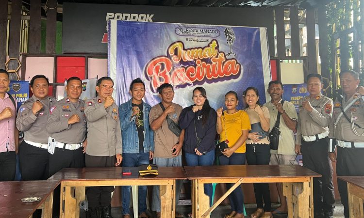 MANADO | Polresta Manado kembali mengadakan kegiatan Jumat Bacirita pada hari Jumat, yang bertujuan untuk membahas isu-isu keamanan dan ketertiban masyarakat (Kamtibmas) di kota Manado, Jumat (30/8/2024).