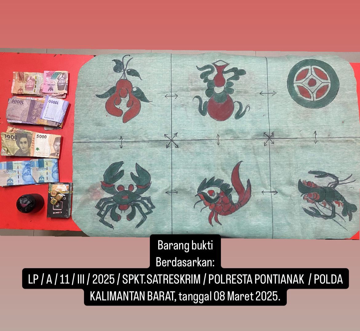 Kapolresta Pontianak, Kombes Pol Adhe Hariadi, S.I.K., M.H, melalui Kasat Reskrim Polresta Pontianak Akp Wawan Darmawan,S.I.K mengungkapkan bahwa pihaknya berhasil menyita sejumlah barang bukti dari lokasi kejadian. Barang bukti yang berhasil diamankan antara lain 1 buah layar Kolok-Kolok, 3 buah dadu, 1 buah hape, 1 kotak rokok yang digunakan sebagai alas HAP dan uang tunai sejumlah Rp1.903.000,- (satu juta sembilan ratus tiga ribu rupiah).