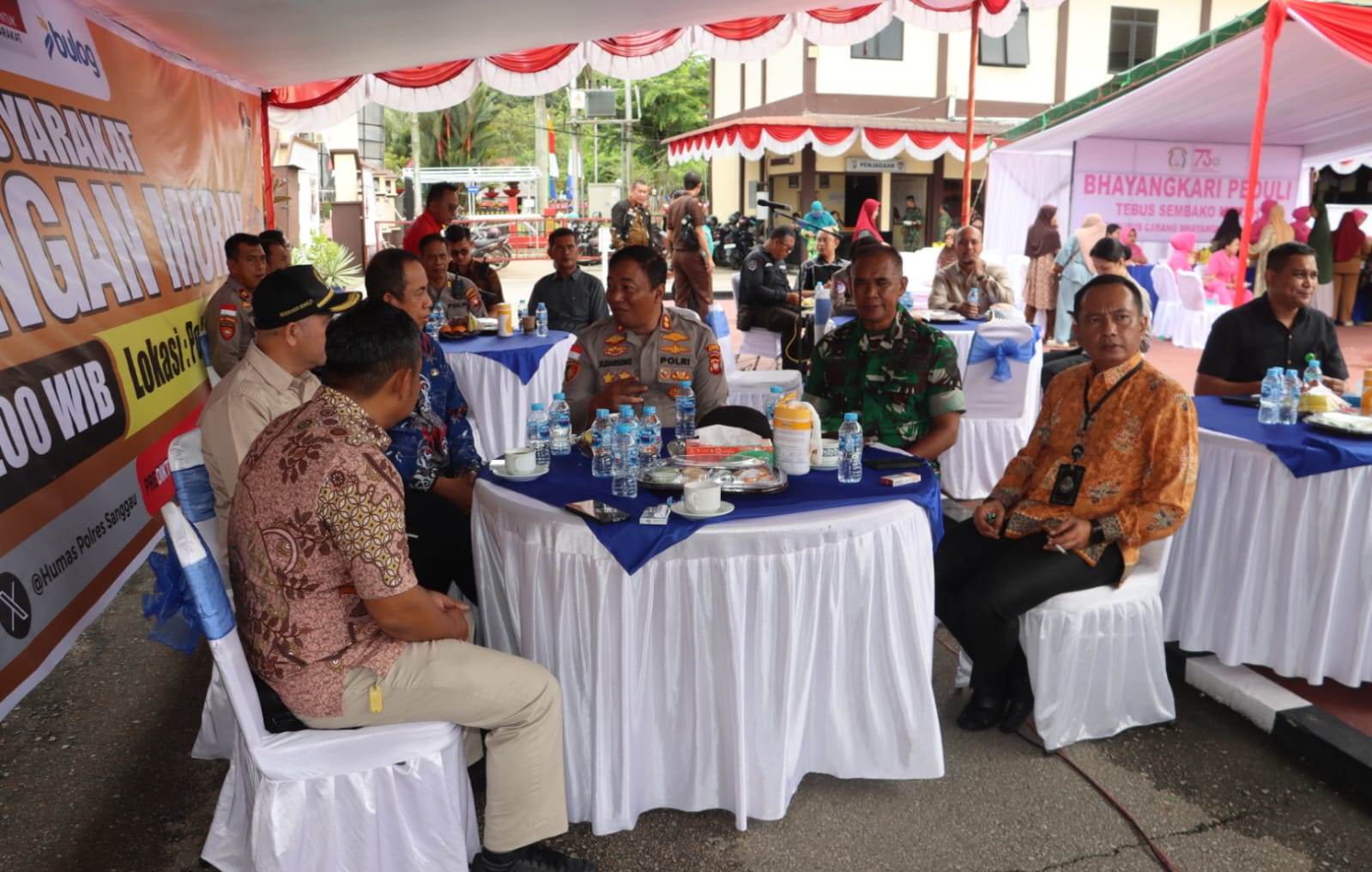 Di Sanggau, kegiatan ini dipimpin Kapolres Sanggau AKBP Sudarsono, S.I.K., M.Si., didampingi Wakapolres KOMPOL Yafet Efraim Patabang, S.H., S.I.K., M.H., bersama jajaran Forum Koordinasi Pimpinan Daerah (Forkopimda) dan perwakilan stakeholder seperti Bulog Sanggau, Indomaret, Indofood, Pertamina, serta Bhayangkari Cabang Sanggau.