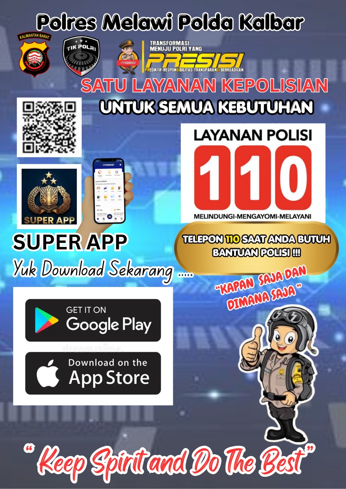 Polres Melawi Polda Kalbar ~ Kepolisian Negara Republik Indonesia (Polri) terus menunjukkan komitmennya dalam meningkatkan kualitas pelayanan publik melalui transformasi digital. Hal ini ditandai dengan peluncuran Super App Polri, sebuah inovasi layanan digital yang kini telah tersedia dan dapat diunduh masyarakat melalui App Store dan Google Play Store.