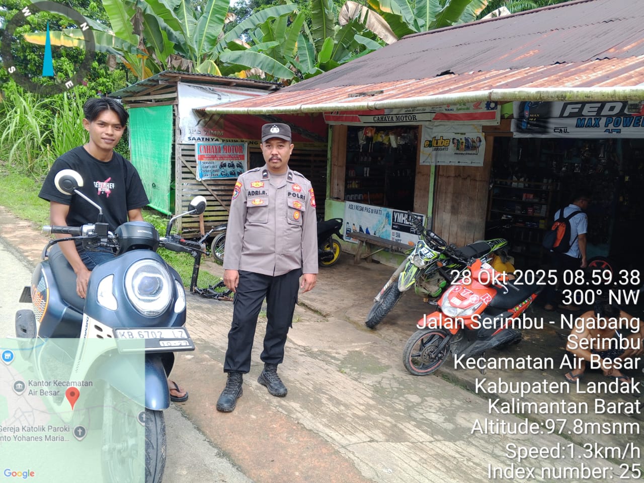 Polsek Air Besar ~ Polres Landak ~ Polda Kalbar ~ Dalam rangka menjaga situasi kamtibmas yang aman dan kondusif di wilayah hukum Polsek Air Besar, jajaran kepolisian terus aktif melaksanakan patroli siang hari. Kegiatan ini tidak hanya bertujuan untuk mencegah tindak kejahatan, tetapi juga menjadi ajang silaturahmi dan edukasi kepada masyarakat, ” Selasa (28/10/2025)